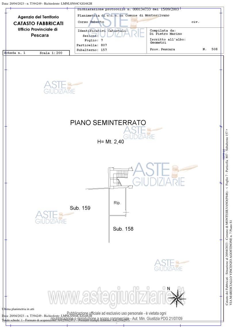 Vendita all'asta Senza incanto, con gara telematica asincrona - LOTTO 12: LOTTO 12 BENE N° 12: Piena proprietà per l’intero (1/1) di un Magazzino ubicato a Montesilvano (PE) - Via VincenzoAgostinone n°07, edificio C, scala C, interno 41, piano SEMINTERRATO. Prezzo base € 1.758,52 (offerta minima € 1.318,89). Data inizio operazioni di vendita: 03/03/2026 ore 15:00. Giudice Dott. Daniela Angelozzi. Professionista delegato alla vendita Avv. Cristian Catapano - Email "cristian.catapano@libero.it". Custode Giudiziario Avv. Cristian Catapano - Email "cristian.catapano@libero.it". Rif. Tribunale di Pescara - Esecuzione immobiliare post legge 80 n. 210/2022