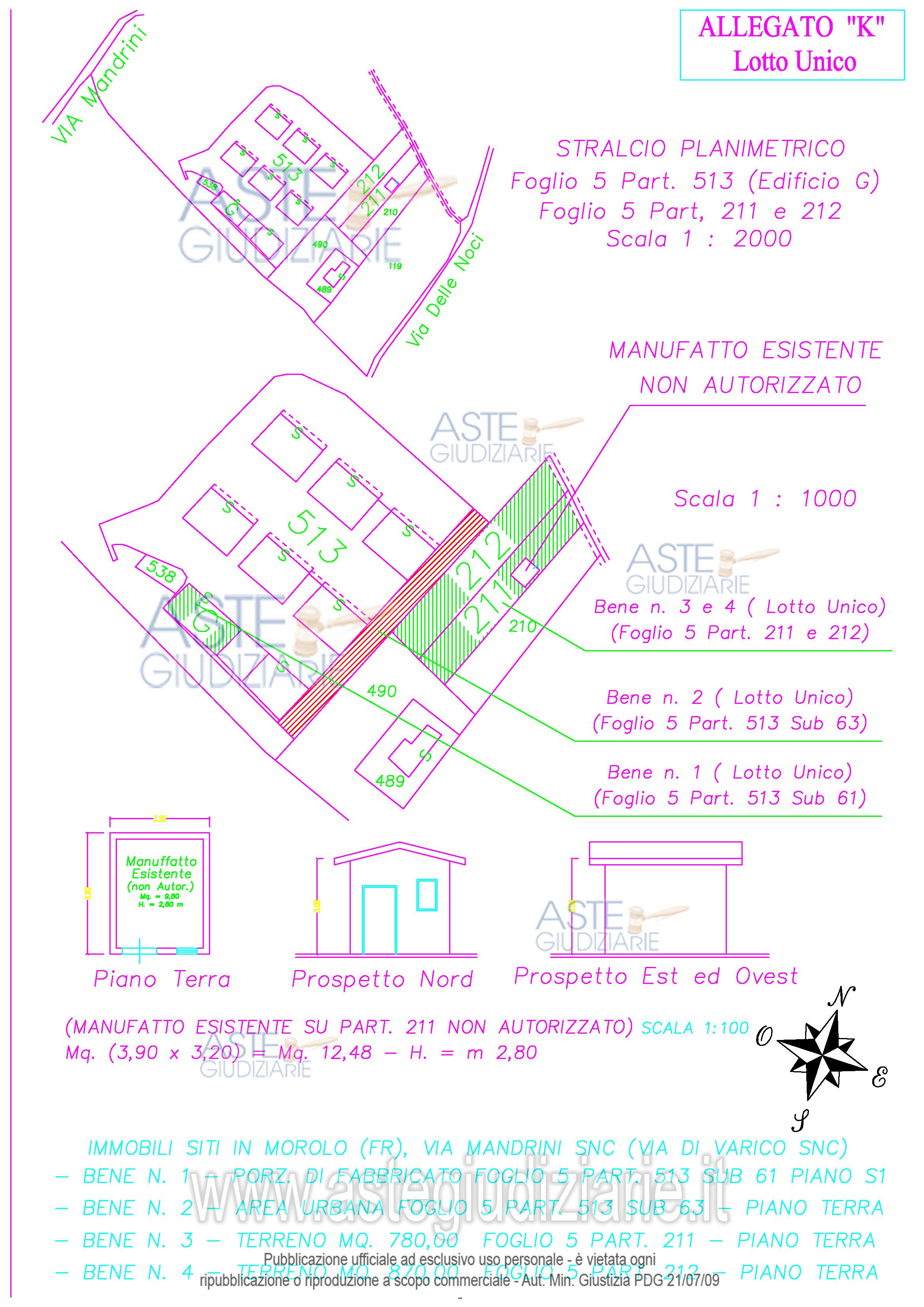 Diritti di piena proprietà per la quota di 1/1 sull’appezzamento di Terreno edificabile di Mq. 780,00.