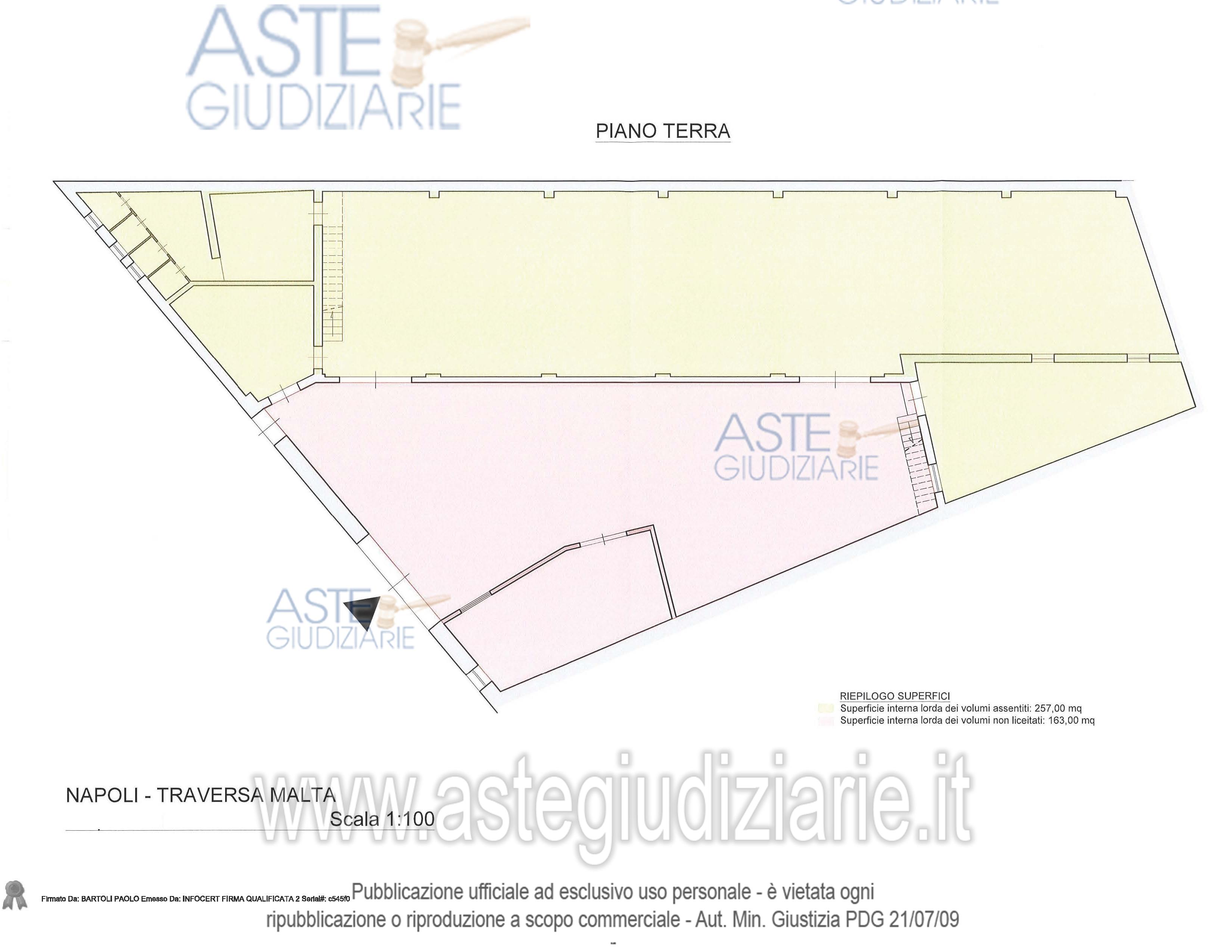 Vendita in attesa dell'emissione del nuovo bando d'asta. LOTTO UNICO: Piena ed intera proprietà di magazzino attualmente utilizzato come laboratorio artigianale che si sviluppa al piano terra, corredato da servizi e locali spogliatoio al piano terra, uffici al piano soppalcato, oltre corte pertinenziale con locale tecnico e piccolo locale deposito, ubicato in Napoli alla Traversa Malta snc. Ultimo prezzo base € 67.500,00 (offerta minima € 50.625,00). Giudice Dott. Federica D'auria. Professionista delegato alla vendita Dott. Federico Toledo - Email "toledo@studiotoledo.it"; Tel. 0817613117. Custode Giudiziario Dott. Federico Toledo - Email "toledo@studiotoledo.it"; Tel. 0817613117. Rif. Tribunale di Napoli - Esecuzione immobiliare post legge 80 n. 864/2015
