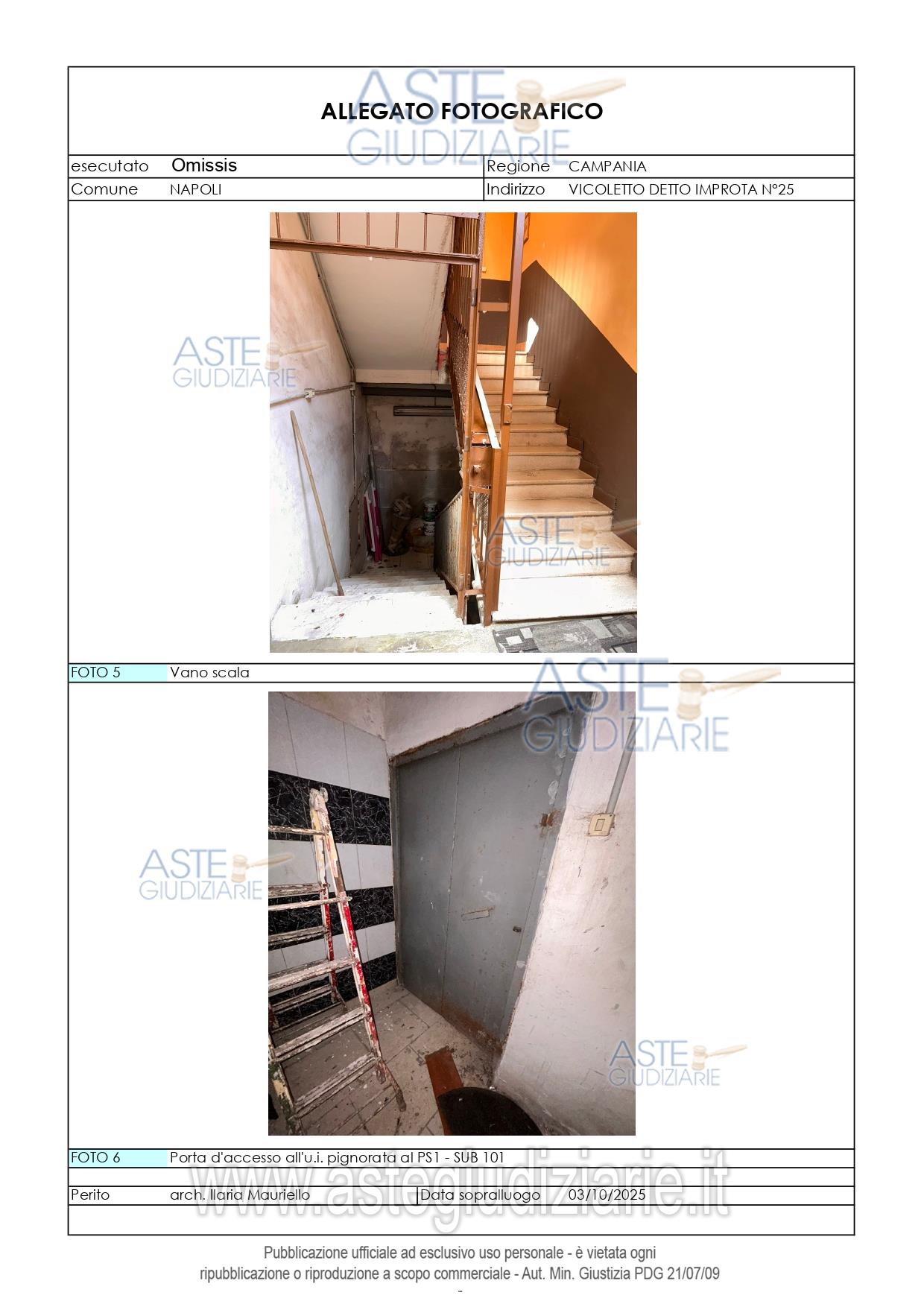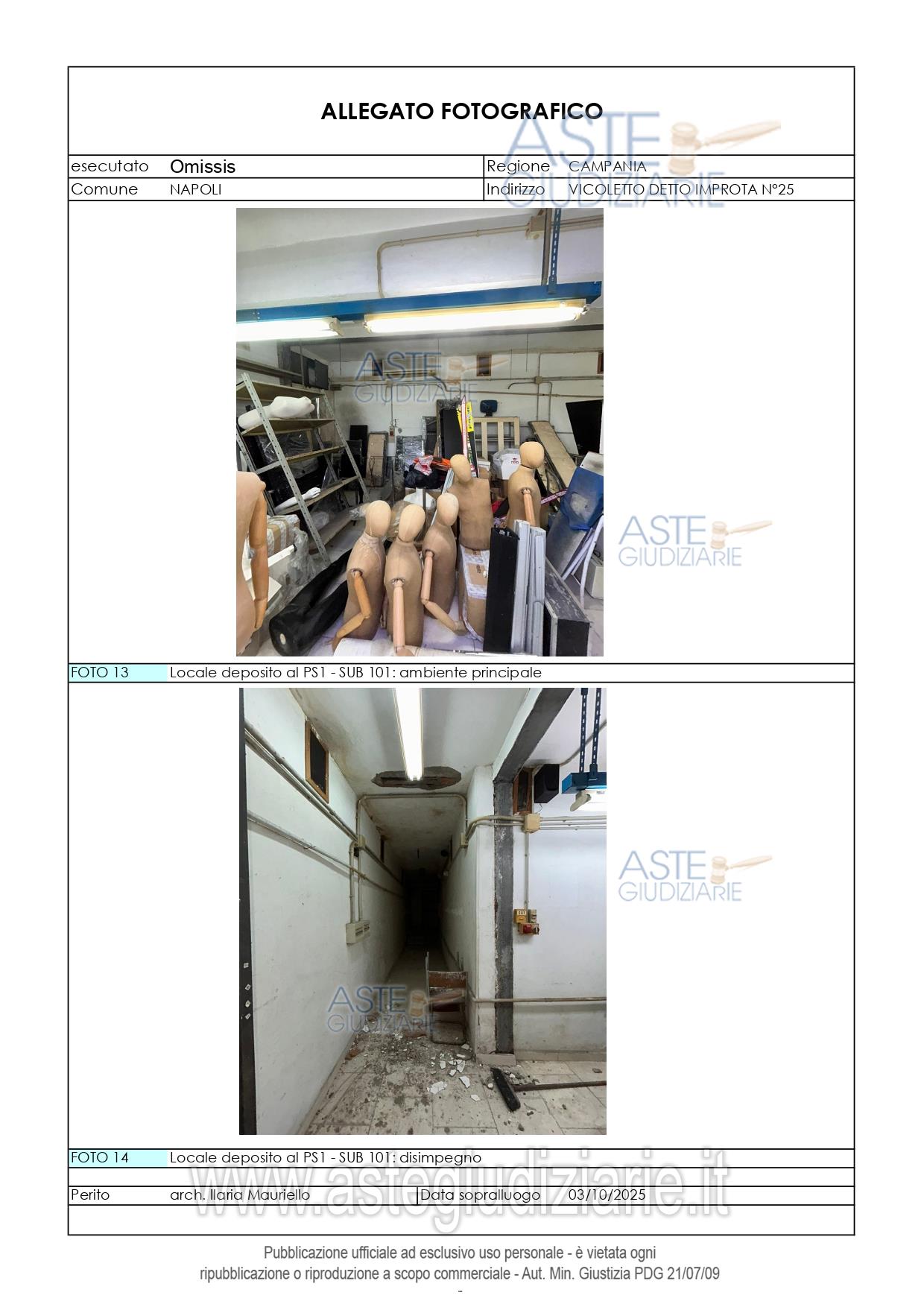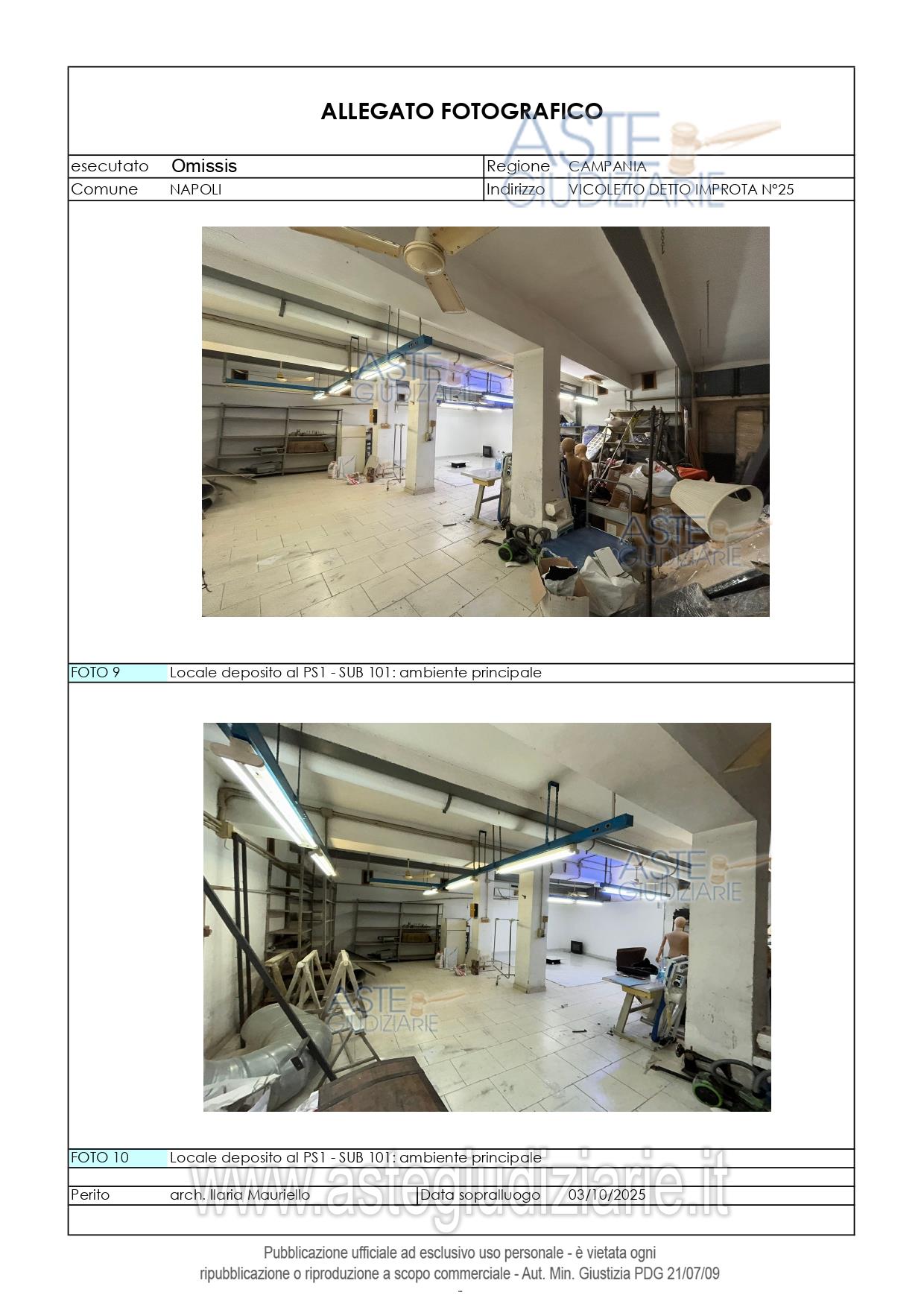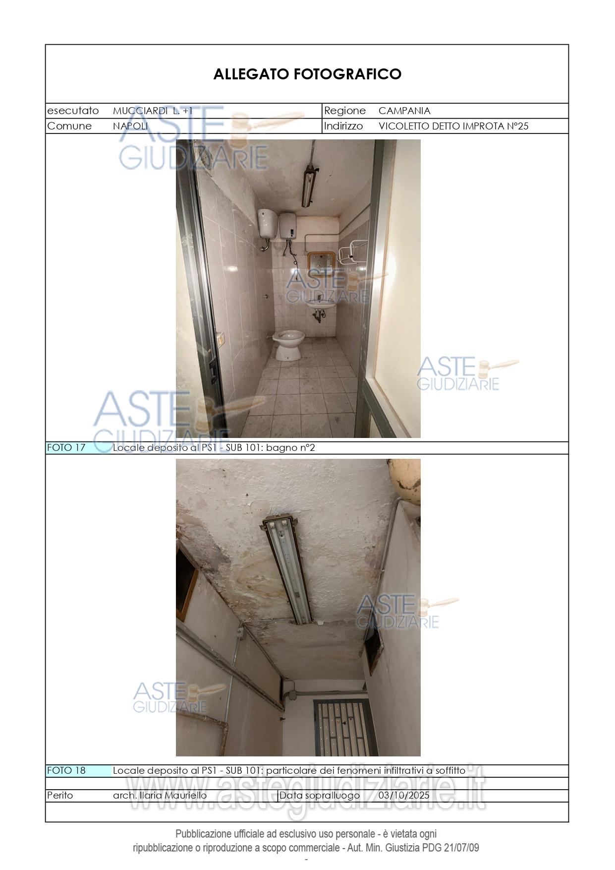 Vendita all'asta Senza incanto, con gara telematica asincrona - LOTTO UNICO: Piena ed intera proprietà di immobile in Napoli 80144, al Vicoletto detto Improta n. 25 consistente in un locale deposito, ubicato al piano seminterrato della superficie netta pari a circa mq 120, composto da ingresso, piccolo ambiente adiacente l’ingresso, ampio ambiente principale, n. 2 bagni; ripostiglio e disimpegni. Prezzo base € 51.000,00 (offerta minima € 38.250,00). Data inizio operazioni di vendita: 21/07/2026 ore 16:00. Giudice: Margherita Lojodice.