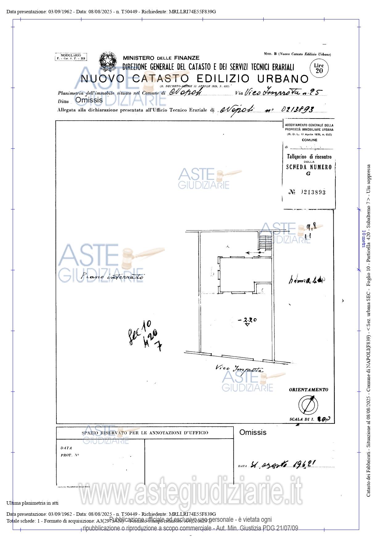 Custode Giudiziario: Avv. Giuseppe Cipriani Marinelli - Email "giuseppe@avvciprianimarinelli.it"; Tel. 081/5519272.