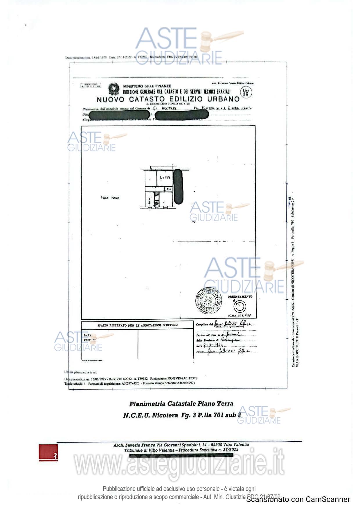 Vendita all'asta Senza incanto, con gara telematica sincrona mista - LOTTO 1: 1/1 di fabbricato piano T - zona cens. 3, cat. C/2, classe U, cons. 28 m2, sup. cat. 70 m2. Prezzo base € 37.350,15 (offerta minima € 28.012,61). Data vendita 28/04/2026 ore 11:00. Giudice Dott. Giulia Orefice. Professionista delegato alla vendita Avv. Anna Figliano - Email "studiolegalefigliano@libero.it"; Tel. 0963269488. Custode Giudiziario Avv. Anna Figliano - Email "studiolegalefigliano@libero.it"; Tel. 0963269488. Rif. Tribunale di Vibo Valentia - Esecuzione immobiliare post legge 80 n. 37/2022