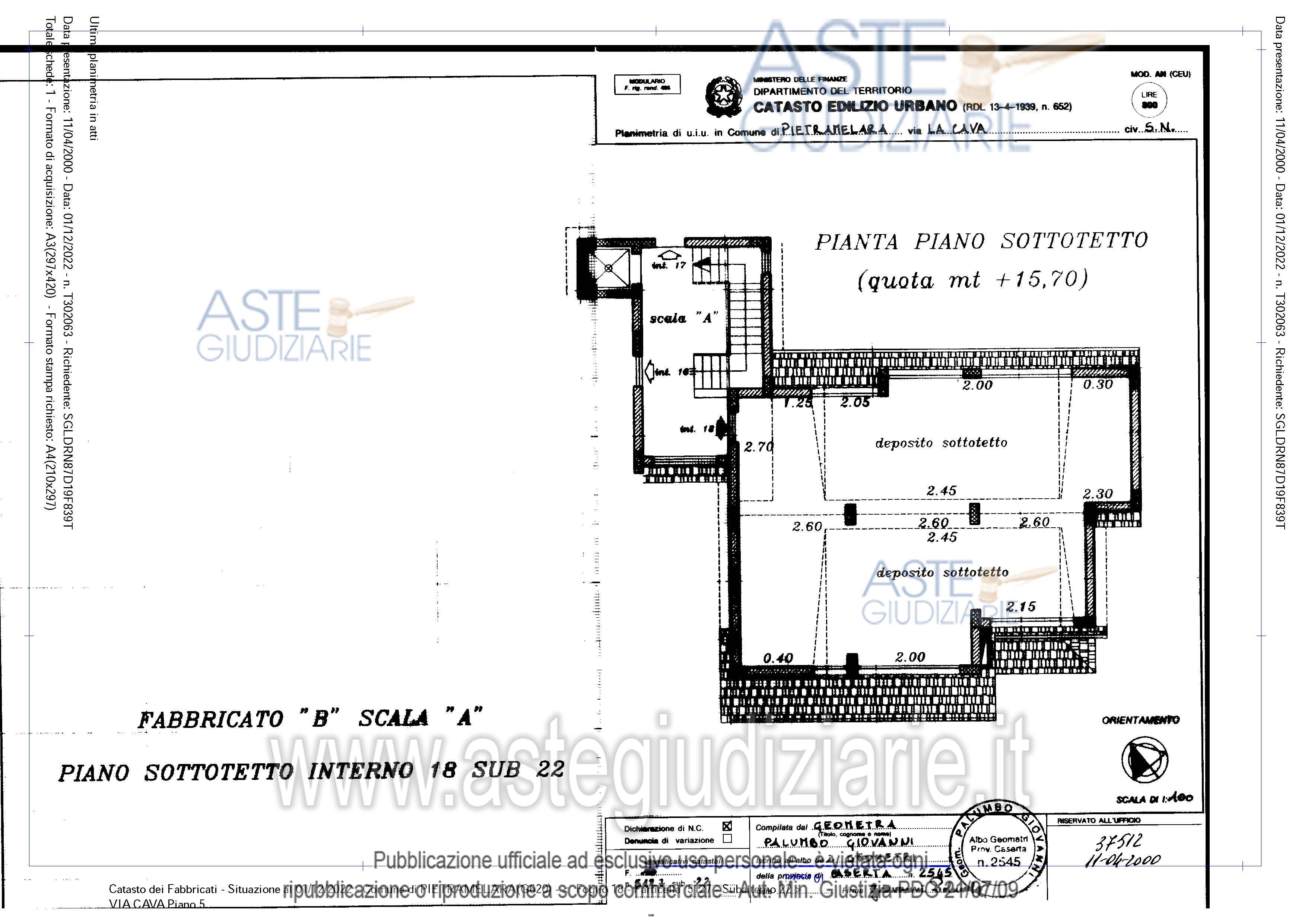 Vendita all'asta Senza incanto, con gara telematica asincrona - LOTTO 3: Full ownership of a storage room located on the fifth floor of building B, stairway A, consisting of a single room without finishes and installations. Prezzo base € 4.769,28. Data inizio operazioni di vendita: 16/06/2026 ore 11:30. Professionista delegato alla vendita Avv. Paola Menditto - Tel. 0823 326 582. Liquidazione coatta n. 87810/2023
