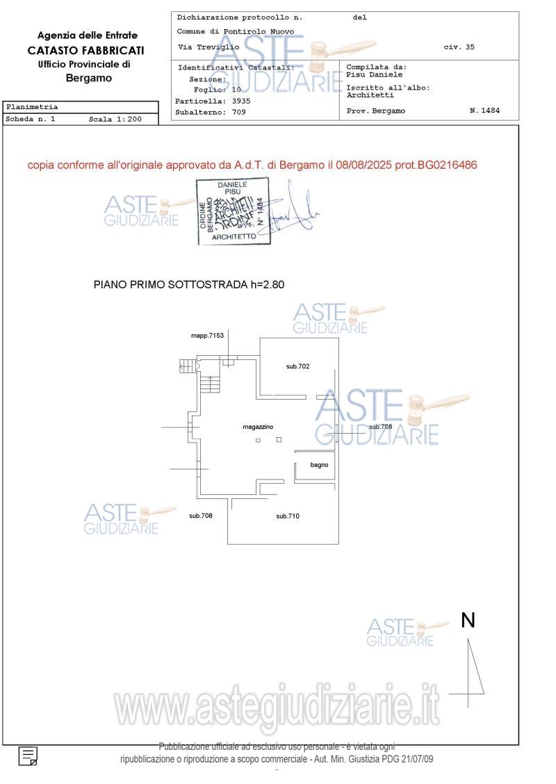 Vendita all'asta Senza incanto, con gara telematica asincrona - LOTTO 2: Lotto 2 -Intera piena proprietà di magazzino con cantina di circa mq 91 posto al piano seminterrato, accatastato come autorimessa e successivamente trasformato in magazzino con servizio igienico senza titoli autorizzativi. Il magazzino è costituito da ampio locale con bagno avente accesso pedonale indipendente attraverso ballatoio d’ingresso e scala in muratura; la porta di accesso carraio è stata trasformata in finestra. E’ altresì presente un locale interrato realizzato in assenza di titolo, non sanabile. Prezzo base € 18.580,00 (offerta minima € 13.935,00). Data inizio operazioni di vendita: 11/03/2026 ore 17:30. Professionista delegato alla vendita Dott. Paola Orlandini - Email "paola.orlandini@studio-orlandini.eu"; Tel. 035211531. Custode Giudiziario Dott. Paola Orlandini - Email "paola.orlandini@studio-orlandini.eu"; Tel. 035211531. Rif. Tribunale di Bergamo - Espropriazione immobiliare (cartabia) n. 80/2025