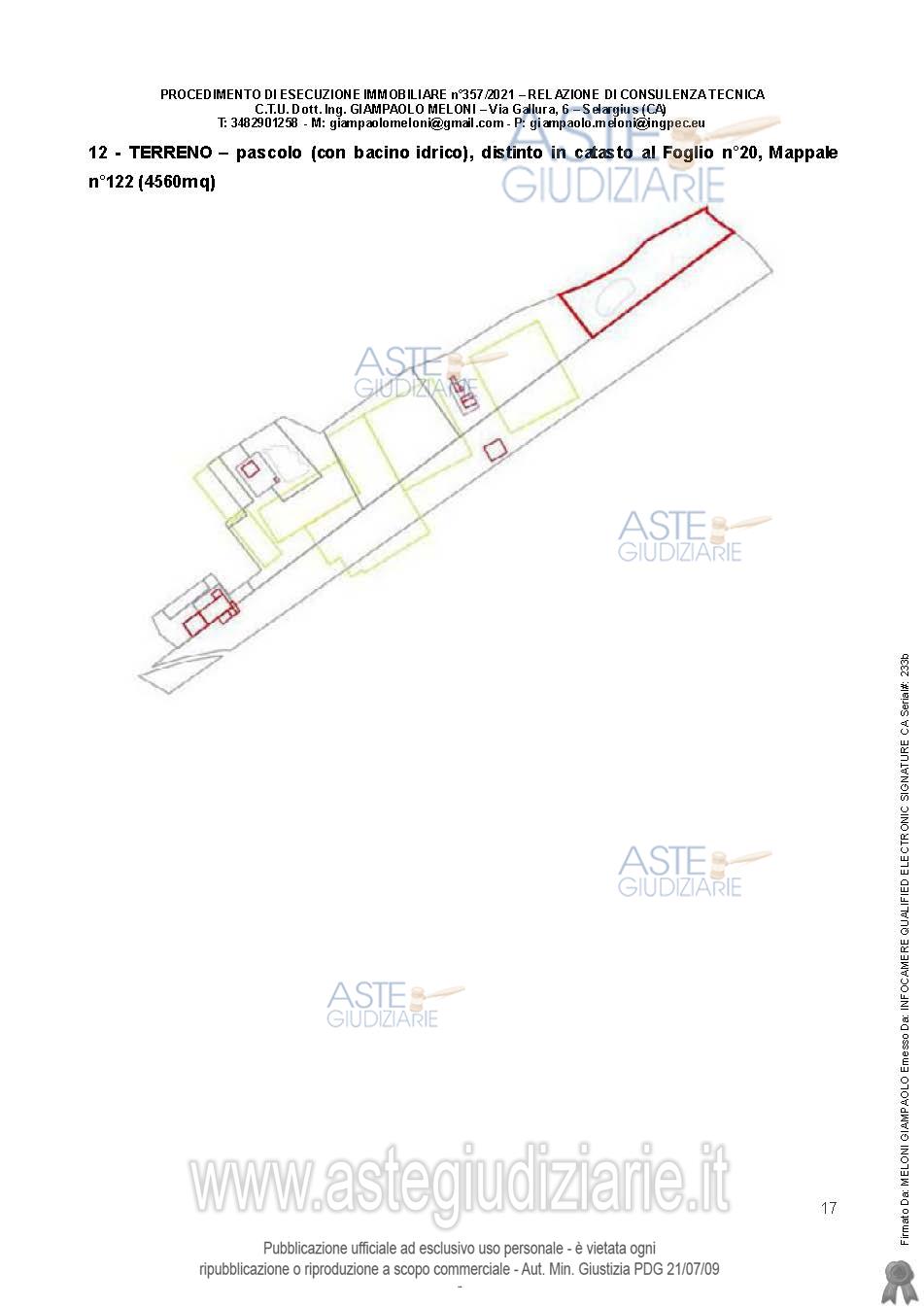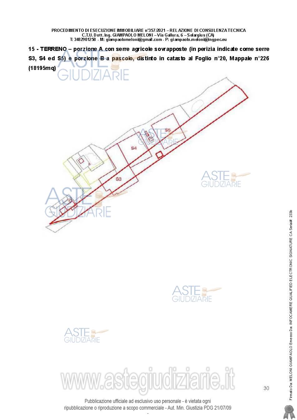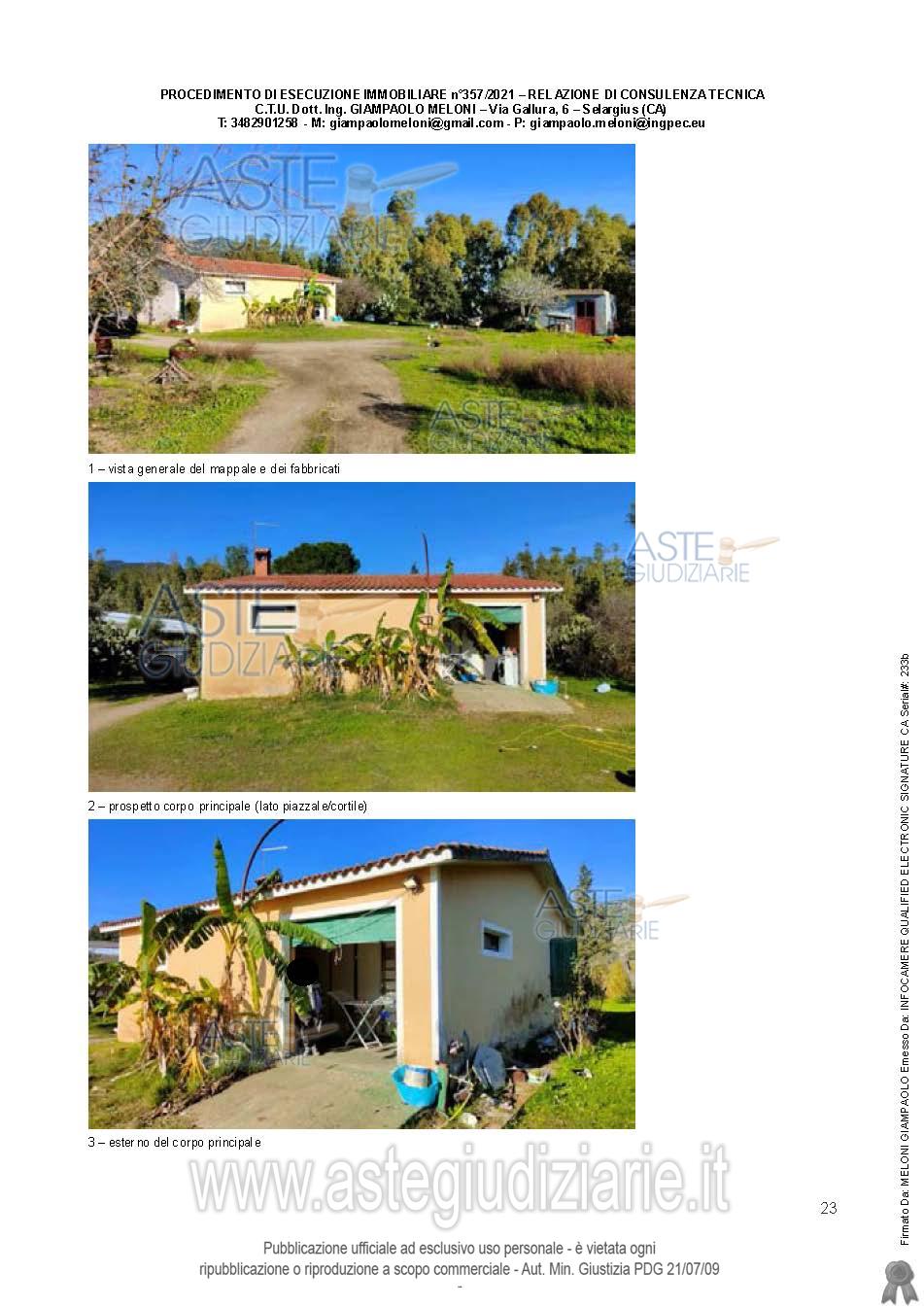 Vendita all'asta Senza incanto, con gara telematica asincrona - LOTTO UNICO: Quota pari all’intero del diritto di proprietà sull’unità immobiliare a destinazione agricola costituita da fabbricati e appezzamenti di terreno. Prezzo base € 598.400,00 (offerta minima € 448.800,00). Data inizio operazioni di vendita: 12/11/2025 ore 09:00. Giudice Flaminia Ielo. Professionista delegato alla vendita Not. Roberto Onano - Email "ufficiouniconotai@pec.it"; Tel. 07060222574. Custode Giudiziario Ivg Cagliari - Email "ivg.visiteimmobili@tiscali.it"; Tel. 0702299036. Rif. Tribunale di Cagliari - Esecuzione immobiliare post legge 80 n. 357/2021