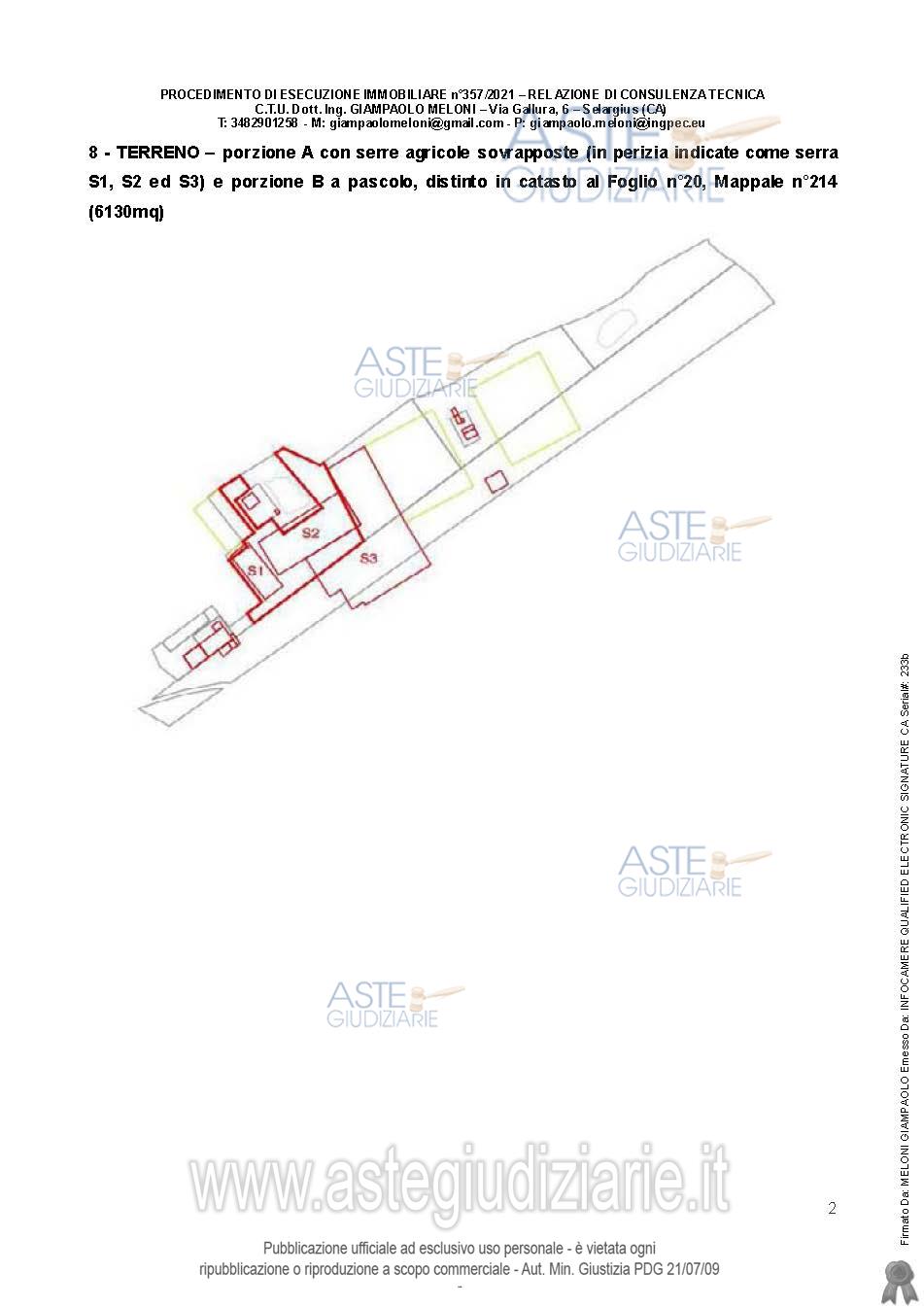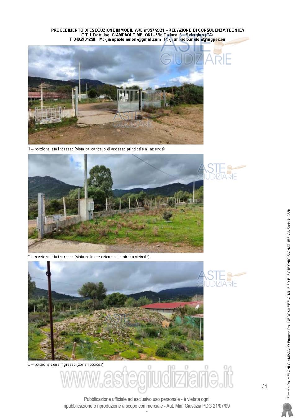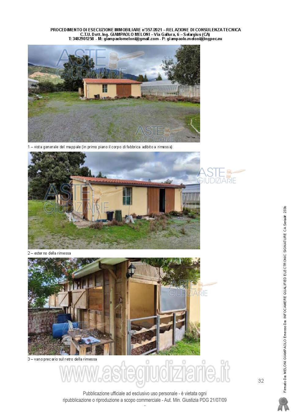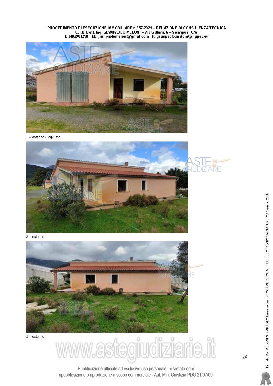 Vendita all'asta Senza incanto, con gara telematica asincrona - LOTTO UNICO: Quota pari all’intero del diritto di proprietà sull’unità immobiliare a destinazione agricola costituita da fabbricati e appezzamenti di terreno. Prezzo base € 538.600,00 (offerta minima € 403.950,00). Data inizio operazioni di vendita: 25/03/2026 ore 09:00. Giudice Flaminia Ielo. Professionista delegato alla vendita Not. Roberto Onano - Email "ufficiouniconotai@pec.it"; Tel. 07060222574. Custode Giudiziario Ivg Cagliari - Email "ivg.visiteimmobili@tiscali.it"; Tel. 0702299036. Rif. Tribunale di Cagliari - Esecuzione immobiliare post legge 80 n. 357/2021