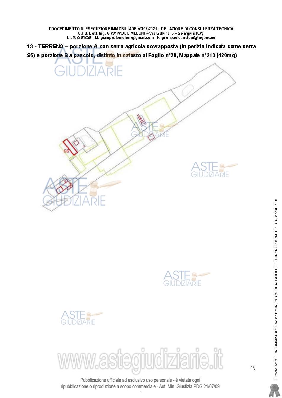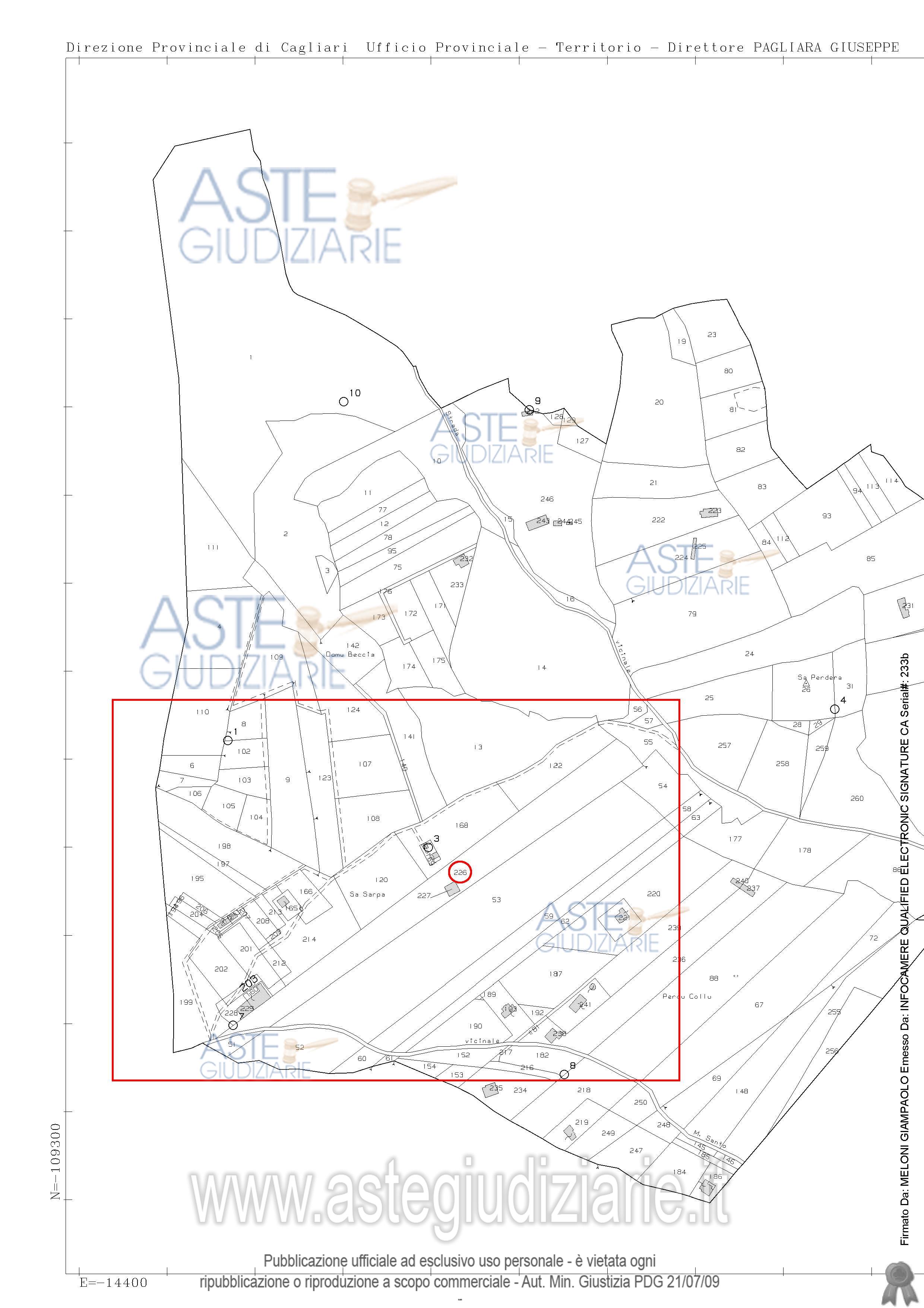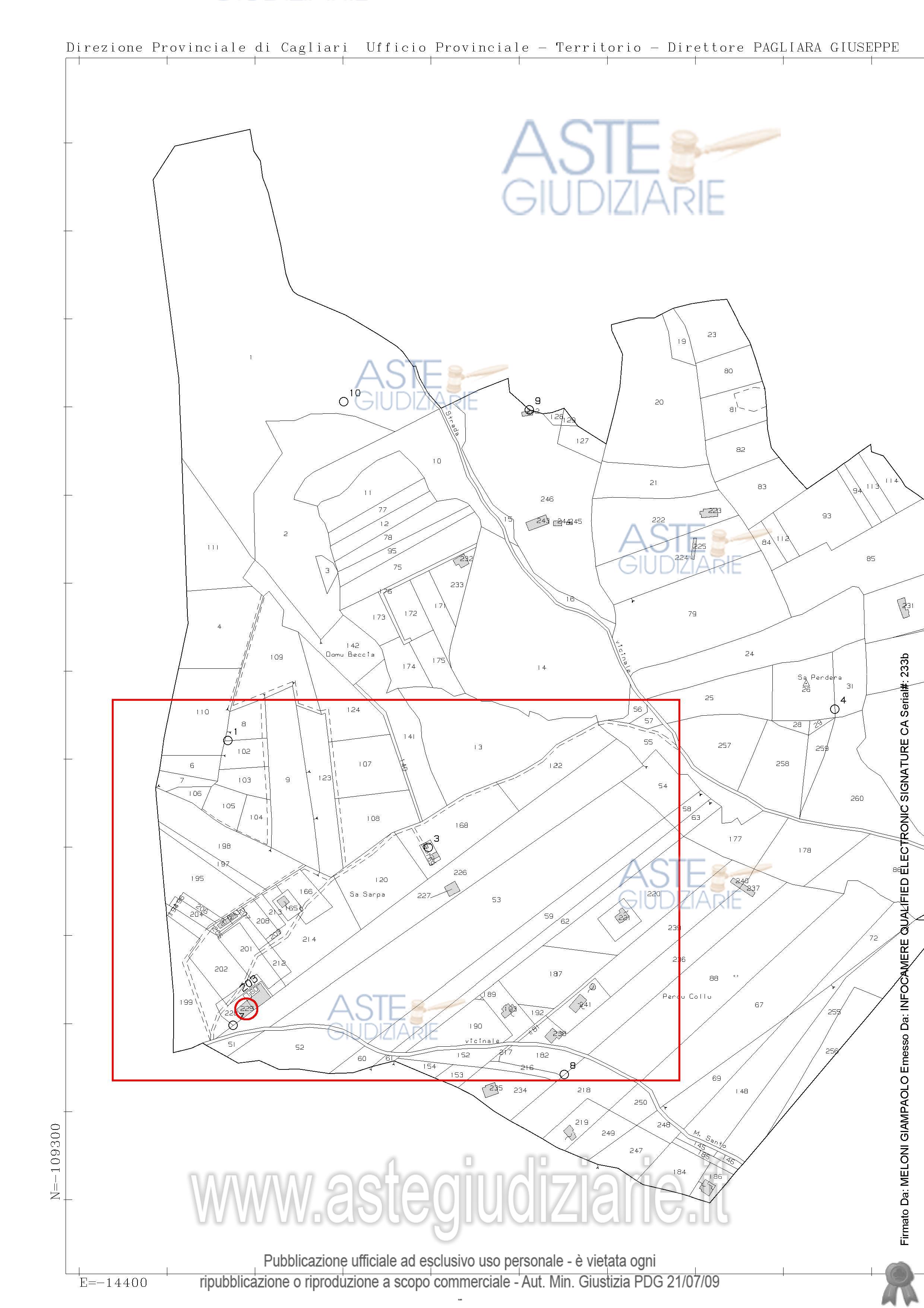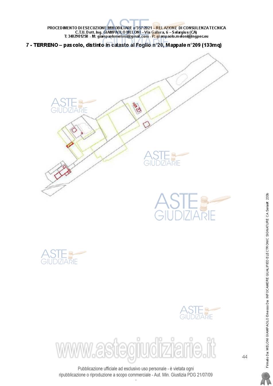 Vendita all'asta Senza incanto, con gara telematica asincrona - LOTTO UNICO: Quota pari all’intero del diritto di proprietà sull’unità immobiliare a destinazione agricola costituita da fabbricati e appezzamenti di terreno. Prezzo base € 538.600,00 (offerta minima € 403.950,00). Data inizio operazioni di vendita: 25/03/2026 ore 09:00. Giudice Flaminia Ielo. Professionista delegato alla vendita Not. Roberto Onano - Email "ufficiouniconotai@pec.it"; Tel. 07060222574. Custode Giudiziario Ivg Cagliari - Email "ivg.visiteimmobili@tiscali.it"; Tel. 0702299036. Rif. Tribunale di Cagliari - Esecuzione immobiliare post legge 80 n. 357/2021
