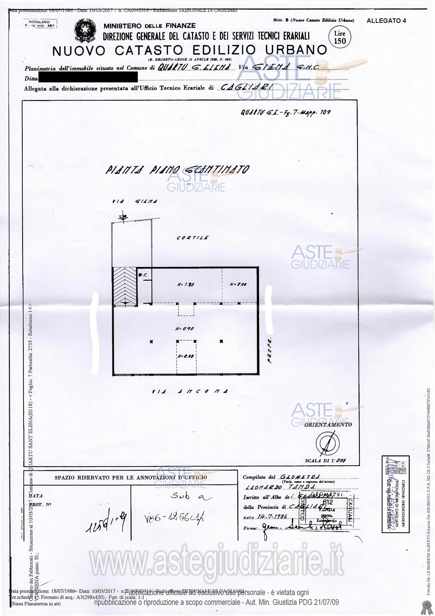 Vendita in attesa dell'emissione del nuovo bando d'asta. LOTTO UNICO: quota pari all’intero del diritto di proprietà sul locale deposito al piano seminterrato del maggior fabbricato in Via Siena n.2, composto da un vano principale, antibagno, bagno, area cortilizia di pertinenza. Ultimo prezzo base € 68.544,00 (offerta minima € 51.408,00). Giudice Francesco De Giorgi. Professionista delegato alla vendita Not. Giovanni Gorini - Email "ufficiouniconotai@pec.it". Custode Giudiziario  Ivg Cagliari - Email "ivg.visiteimmobili@tiscali.it"; Tel. 0702299036.  Rif. Tribunale di Cagliari - Esecuzione immobiliare post legge 80 n. 215/2015