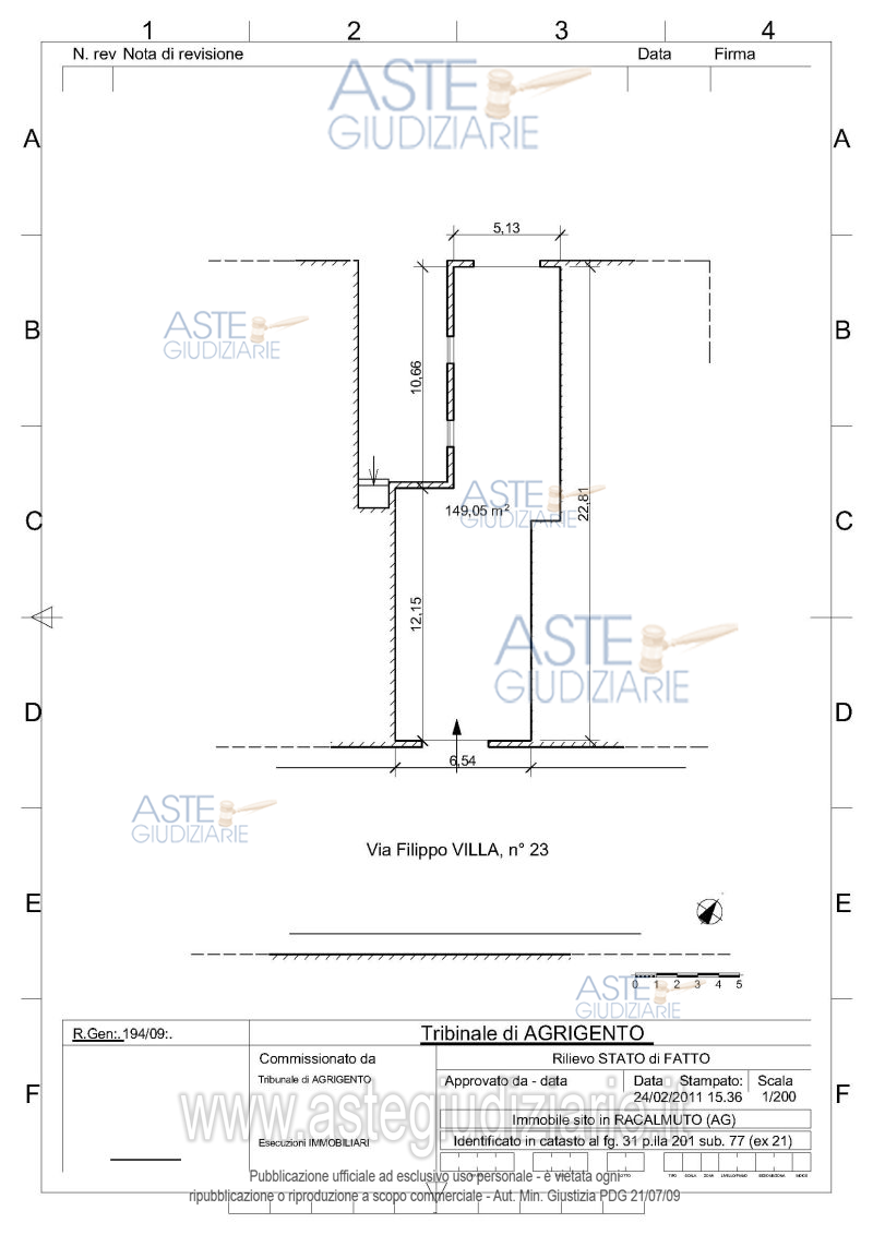 Vendita all'asta Senza incanto, con gara telematica sincrona mista - LOTTO 002: Lotto 2: Piena proprietà per la quota di 1000/1000 di immobile ad uso “magazzino” sito in Racalmuto Via Filippo Villa n. 23, piano terra, identificato in N.C.E.U. al foglio 31 particella 201 sub 77. Occupato. Prezzo base € 20.925,00 (offerta minima € 15.693,75). Data vendita 02/07/2026 ore 16:00. Giudice Vitalba Pipitone. Professionista delegato alla vendita Avv. Calogero Orlando - Email "avv.lillorlando@virgilio.it". Custode Giudiziario Avv. Calogero Orlando - Email "avv.lillorlando@virgilio.it". Rif. Tribunale di Agrigento - Esecuzione immobiliare post legge 80 n. 194/2009