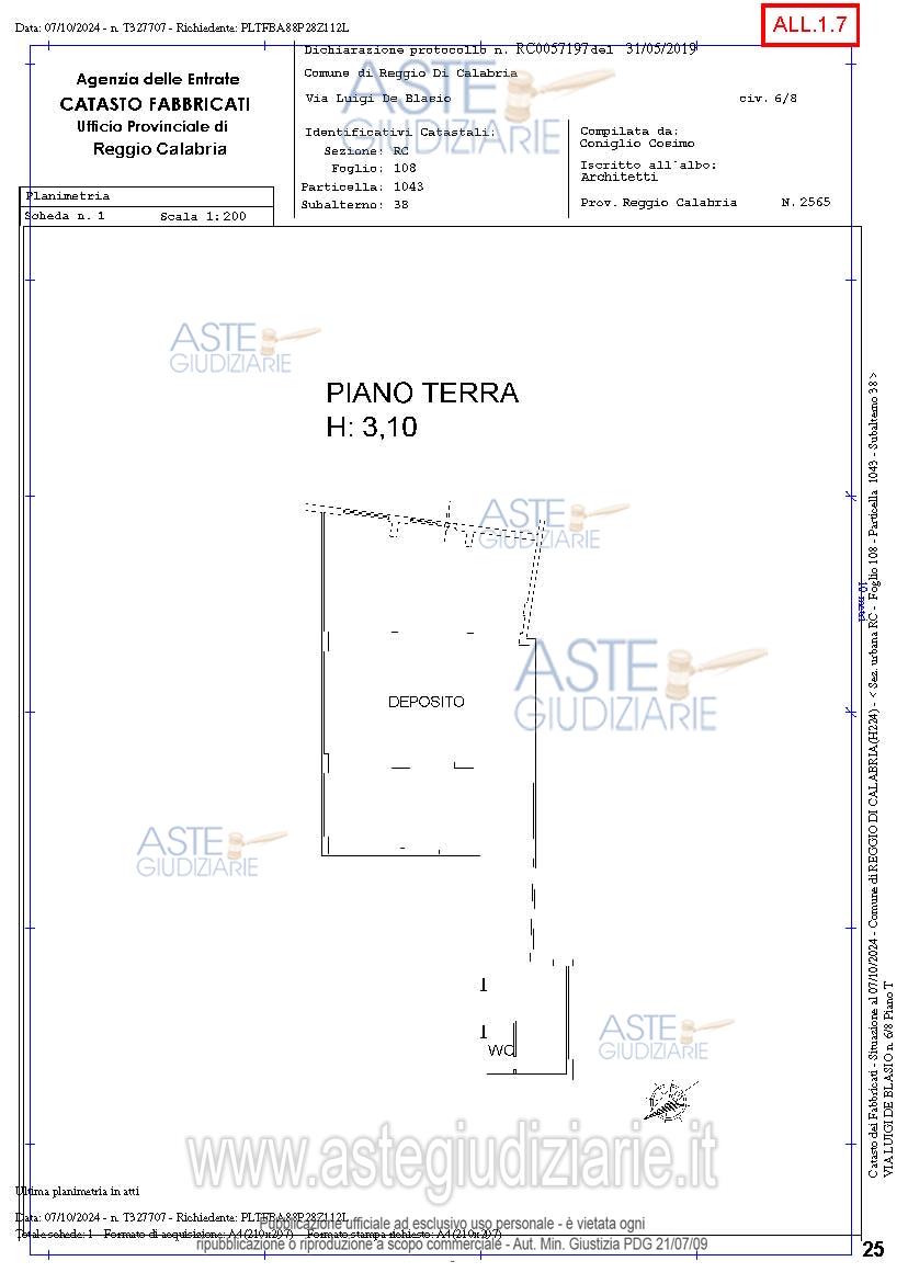 Vendita all'asta Senza incanto, con gara telematica asincrona - LOTTO 2: Unità commerciale magazzino sito a Reggio Calabria, sita in Via Monsignor Lanza –identificato in NCEU Sez. Urb. RC Foglio 108 Particella 1043 Subalterno 38 cat C/2,classe 3, Consistenza 173 mq – rendita catastale € 1.125,77. Prezzo base € 91.700,00 (offerta minima € 68.775,00). Data inizio operazioni di vendita: 27/01/2026 ore 12:00. Giudice Dott. Stefano Cantone. Professionista delegato alla vendita Avv. Irene Pignata - Email "studiolegaleirenepignata@gmail.com"; Tel. 0965891904. Rif. Tribunale di Reggio di Calabria - Contenzioso civile n. 809/2024