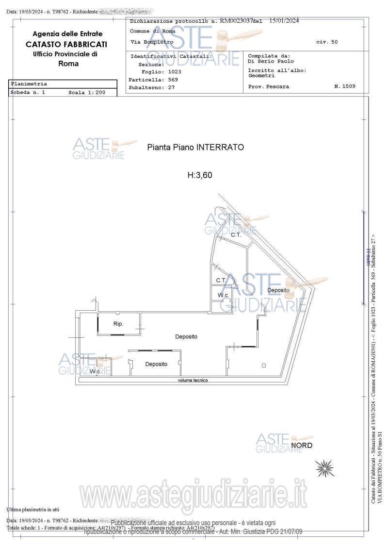 Vendita in attesa dell'emissione del nuovo bando d'asta. LOTTO UNICO: Piena proprietà su locale magazzino - già locale commerciale, già magazzino nato dalla fusione degli originari limitrofi beni ad uso cantina e box auto - ubicato a Roma, (RM), in via Bompietro n. 52 (catastalmente civ. 50), piano S1. Censito al C. di F. di Roma al Fg. 1023, part. 569, sub. 27 ( già sub 129) , cat. C/2 (già cat. C/1 a seguito di variazione di destinazione da negozio a locale deposito del 15/01/2024, pratica n. RM0023037, successiva al pignoramento), z.c. 6, classe 7, r. c. €. 535,77. Ultimo prezzo base € 77.824,00 (offerta minima € 58.368,00). Giudice Federica D'ambrosio. Professionista delegato alla vendita Avv. Marzia De Gregorio. Custode Giudiziario Ivg Di Roma Srl - Email "pvp@visiteivgroma.it"; Tel. 0689569801. Rif. Tribunale di Roma - Esecuzione immobiliare post legge 80 n. 327/2022