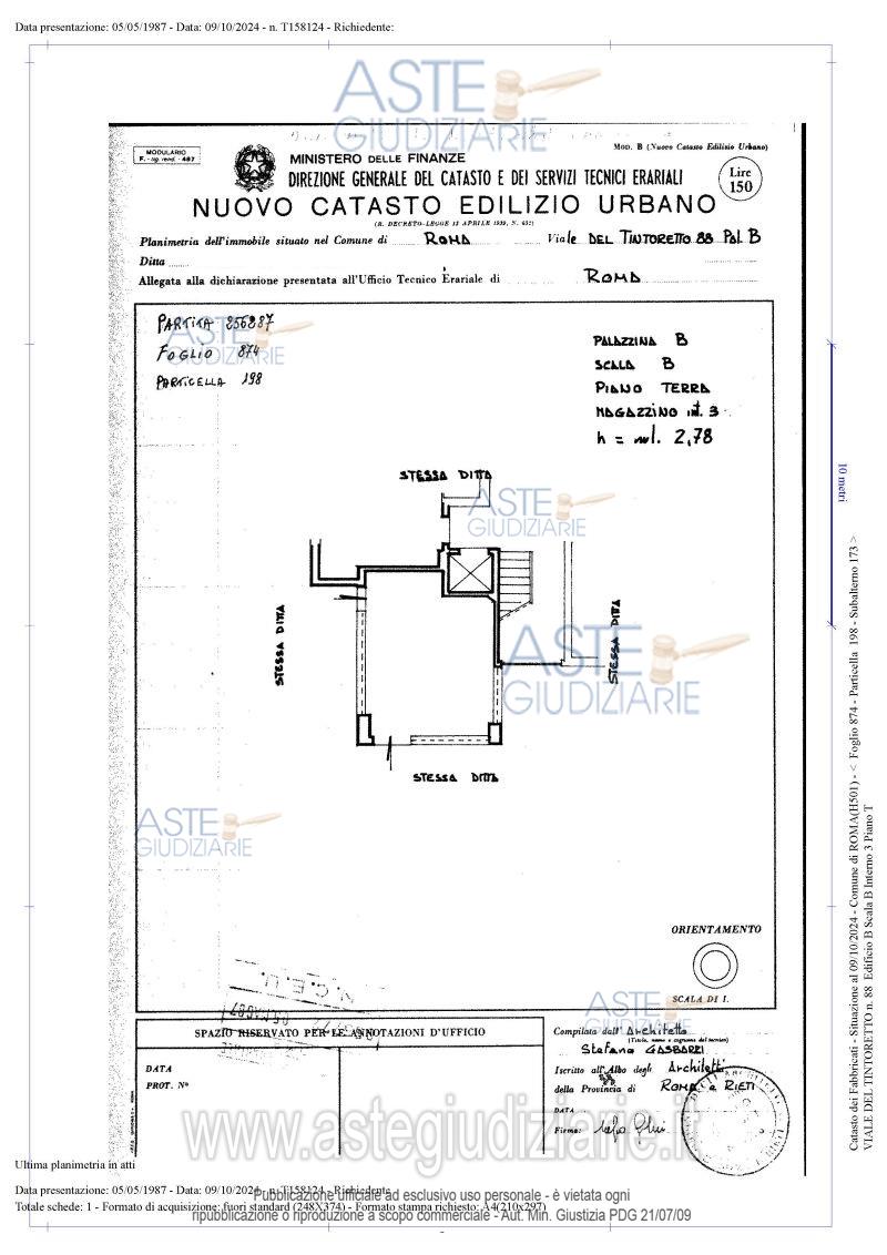 Vendita in attesa dell'emissione del nuovo bando d'asta. LOTTO 8: Quota pari a 100/100 del diritto di proprietà su:Unità immobiliare adibita a magazzino posta al piano terra dell'edificio sito in Roma con accesso da Viale del Tintoretto 88, edificio B, scala B e identificata con il numero interno 3. Ultimo prezzo base € 29.000,00 (offerta minima € 21.750,00). Giudice Federica D'ambrosio. Professionista delegato alla vendita Avv. Francesco Carluccio. Custode Giudiziario I.V.G Di Roma S.R.L. Istituto Vendite Giudiziarie - Email "pubblicita@ivgroma.it"; Tel. 06 83751500. Rif. Tribunale di Roma - Espropriazione immobiliare (cartabia) n. 435/2023