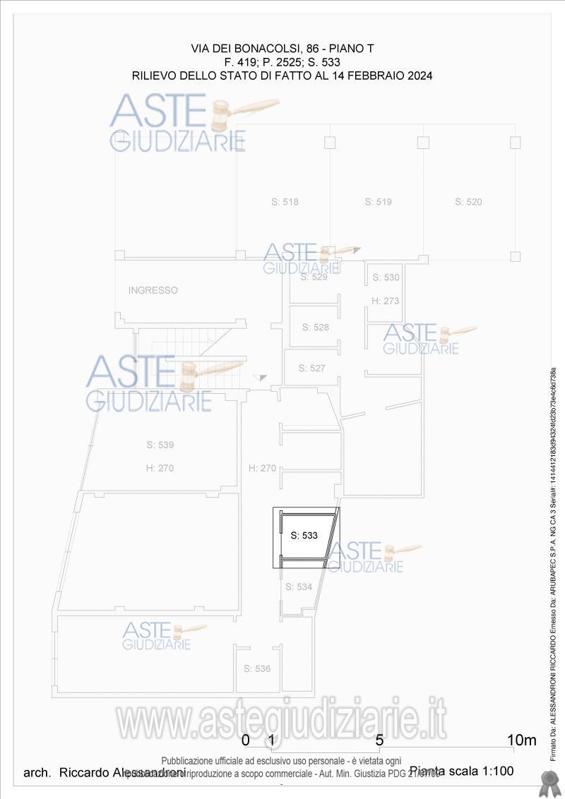 Vendita all'asta Senza incanto, con gara telematica asincrona - LOTTO 32: Bene N° 13 in perizia - quota pari 1/1 del diritto di piena proprietà su cantina sito in Roma (RM) - via dei Bonacolsi 86, interno 7, piano T, per una superficie totale di mq. 3,10 lorda. Prezzo base € 1.874,40 (offerta minima € 1.405,80). Data inizio operazioni di vendita: 20/04/2026 ore 10:00. Giudice Dott. Federica D'ambrosio. Professionista delegato alla vendita Avv. Claudio Nicolais. Custode Giudiziario Ivg Di Roma Srl - Email "pvp@visiteivgroma.it"; Tel. 0689569801. Rif. Tribunale di Roma - Esecuzione immobiliare post legge 80 n. 63/2021