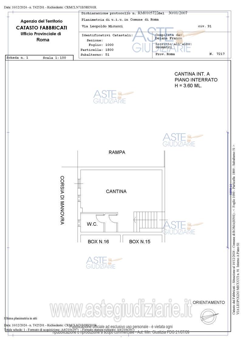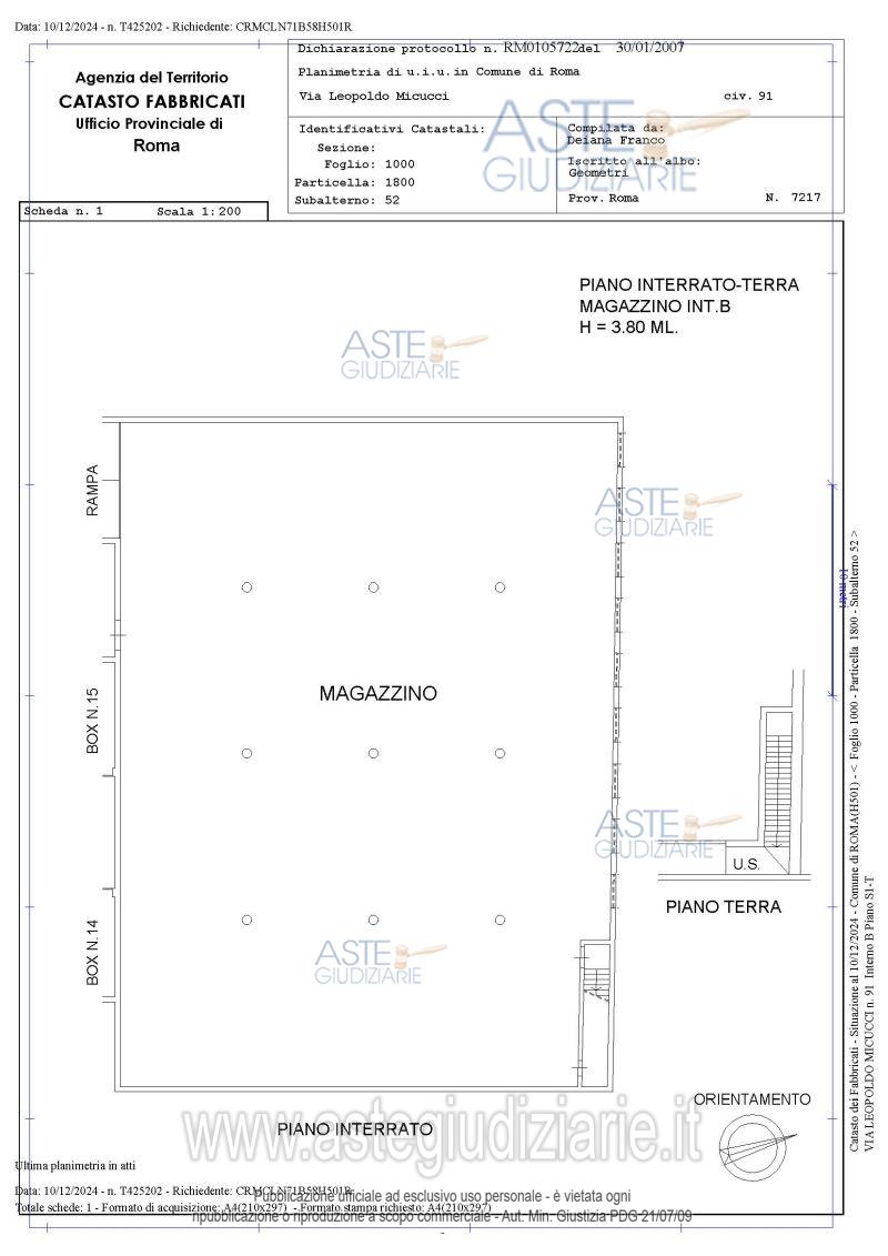 Vendita all'asta Senza incanto, con gara telematica asincrona - LOTTO UNICO: Quota pari ad 1/1 del diritto di piena proprietà di immobile abusivo, con destinazione d’uso catastale di magazzino, sito in Roma (RM), Via Leopoldo Micucci n. 91, int. B, piano S1-T, e di immobile abusivo con destinazione d’uso catastale di cantina, sito in Roma (RM), Via Leopoldo Micucci n. 91, int. A, piano S1. Prezzo base € 358.000,00 (offerta minima € 268.500,00). Data inizio operazioni di vendita: 01/07/2026 ore 14:00. Giudice Dott. Miriam Iappelli. Professionista delegato alla vendita Avv. Letizia Sdrubolini. Custode Giudiziario Ivg Di Roma Srl - Email "pvp@visiteivgroma.it". Rif. Tribunale di Roma - Esecuzione immobiliare post legge 80 n. 738/2020