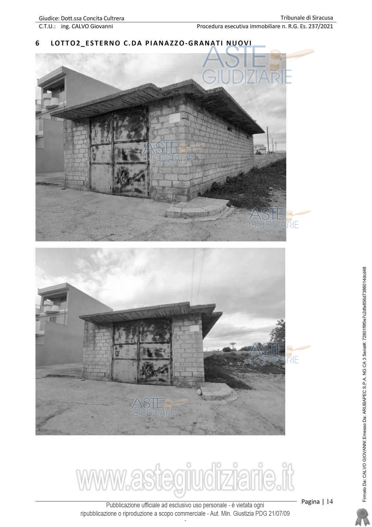 Vendita all'asta Senza incanto, con gara telematica sincrona mista - LOTTO 2: piena proprietà dell’immobile costituito da un fabbricato adibito a locale magazzino sito in Rosolini, c.da Pianazzo-Granati Nuovi, snc, ricade in ZTO “B2/8”(P.P.R.) del vigente PRG, della superficie di mq 65 circa, anche questo allo stato grezzo dei luoghi. Al Catasto fabbricati del Comune di Rosolini al foglio 31 mappale 2474 contrada Pianazzo snc P.T. Cat C/2, cl. 2, metri quadrati consistenza 65 rendita catastale 211,49. Prezzo base € 15.468,75 (offerta minima € 11.601,56). Data vendita 05/02/2026 ore 09:00. Professionista delegato alla vendita Avv. Rosaria Guarino - Email "avvrosgua@gmail.com"; Cell. 3495377465; Tel. 3495377465. Custode Giudiziario Avv. Rosaria Guarino - Email "avvrosgua@gmail.com"; Cell. 3495377465; Tel. 3495377465. Rif. Tribunale di Siracusa - Esecuzione immobiliare post legge 80 n. 237/2021