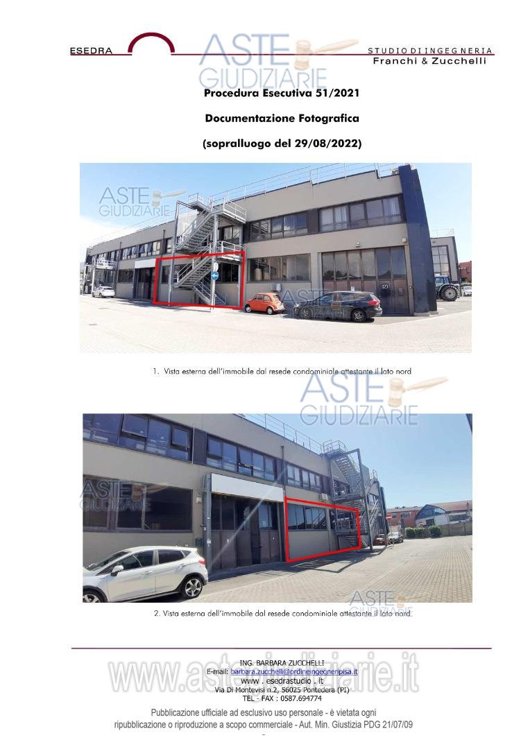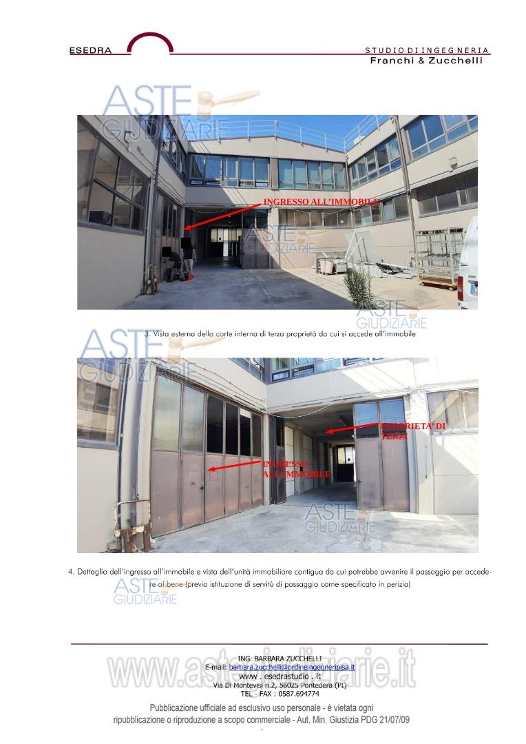 Vendita all'asta Senza incanto, con gara telematica sincrona mista - LOTTO UNICO: piena proprietà di unità locale ad uso deposito - magazzino. Prezzo base € 72.500,00 (offerta minima € 54.375,00). Data vendita 26/02/2026 ore 10:00. Giudice Laura Pastacaldi. Professionista delegato alla vendita Avv. Marco Montanelli - Email "m.montanelli@montanelligerbi.legal"; Tel. 0587756644. Custode Giudiziario Dott. Cosimo Erriquez - Email "prenotazionipisa@astagiudiziaria.com"; Tel. 050554790. Rif. Tribunale di Pisa - Esecuzione immobiliare post legge 80 n. 51/2021