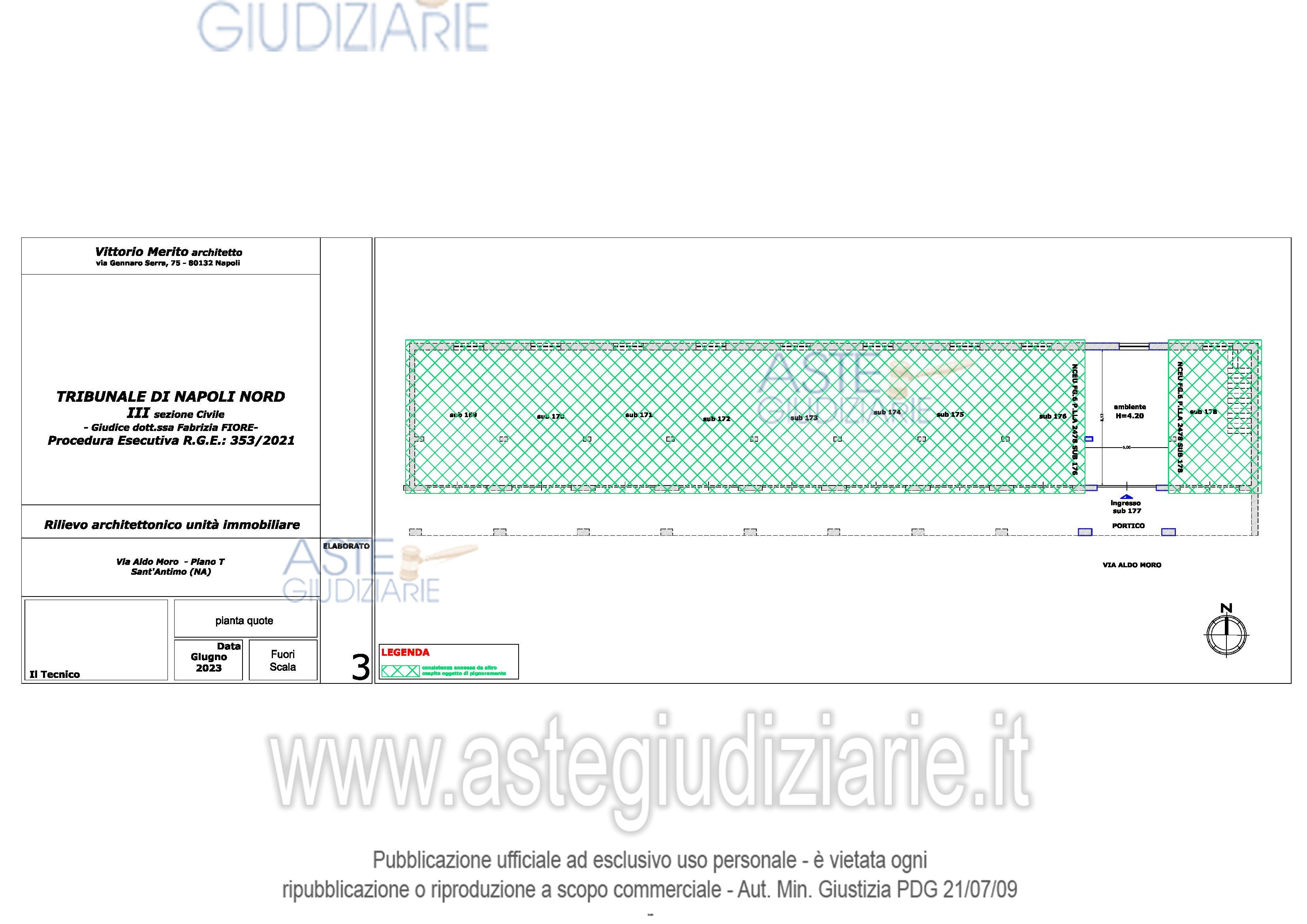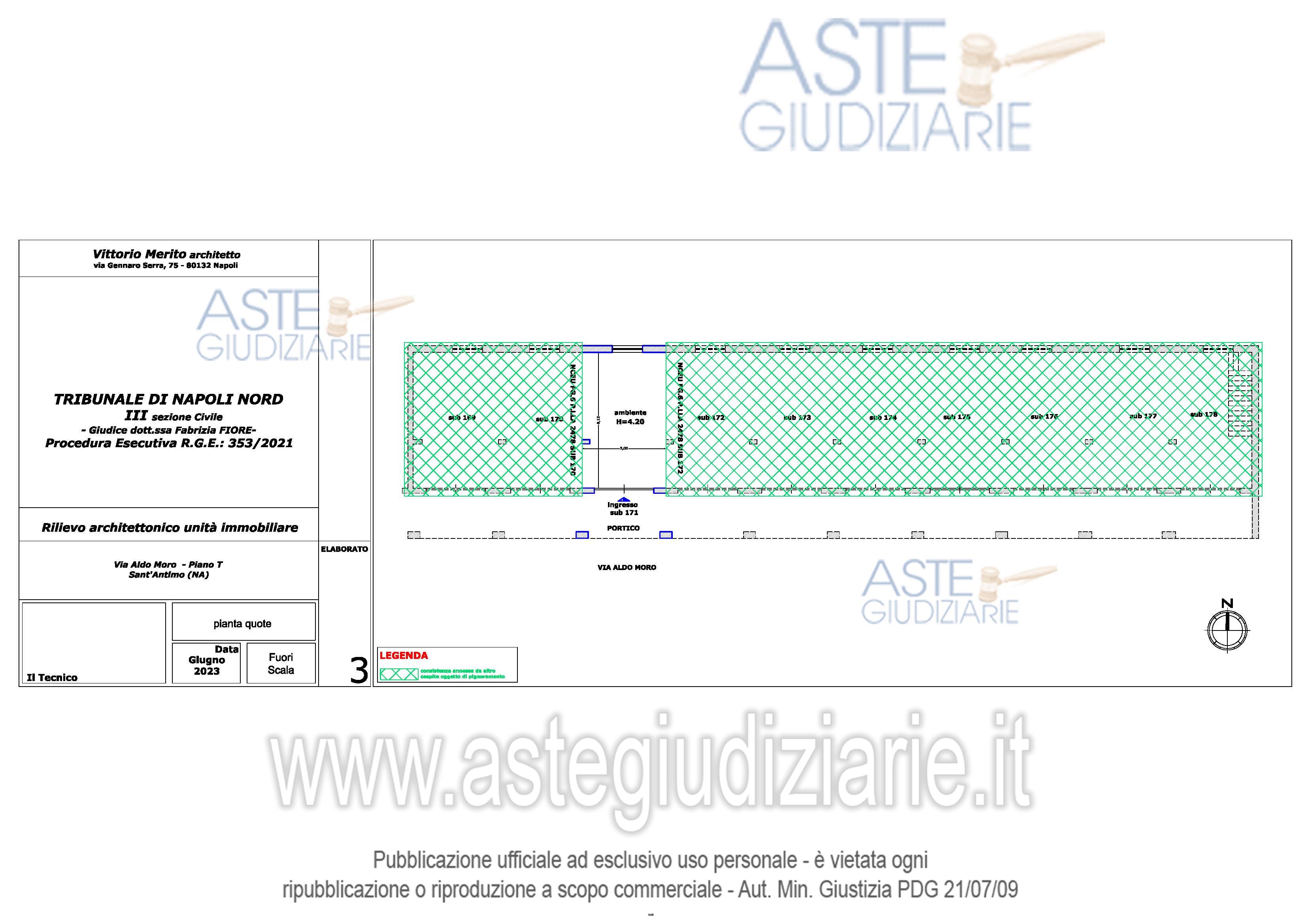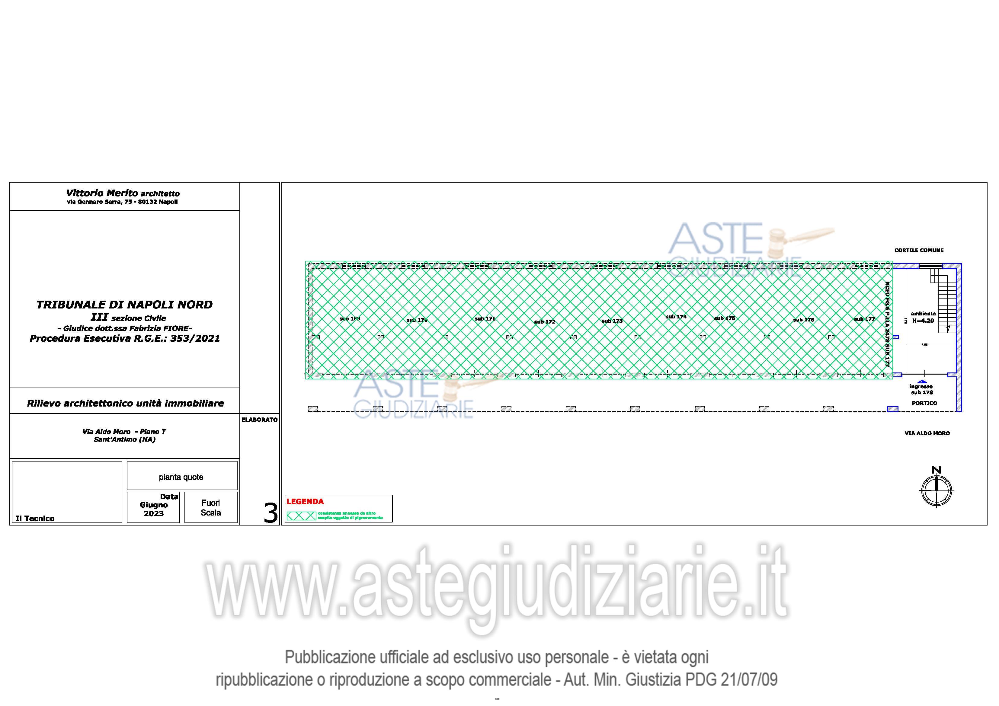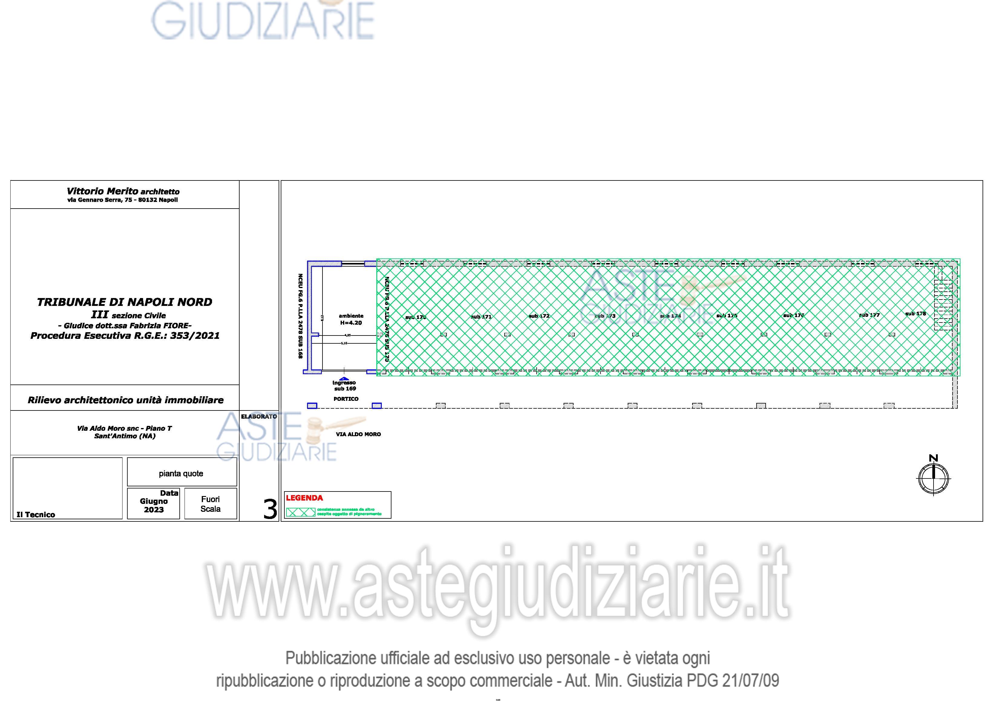 Vendita all'asta Senza incanto, con gara telematica asincrona - LOTTO 3: Locali commerciali: NCEU comune di Sant’Antimo, foglio 6, particella 2478, sub. 169, 170, 171, 172, 173, 174, 175, 176, 177,178, cat. C/1, classe 6, consistenza 39 mq, sup. cat. 46 mq, rendita € 906,38 – via Aldo Moro snc - piano T + Deposito: NCEU comune di Sant’Antimo, foglio 6, particella 2478, sub. 185, cat. C/2, classe 1, consistenza 534 mq, sup. cat. 564 mq, rendita € 827,36 – via Aldo Moro snc - piano S1 . Prezzo base € 631.350,00 (offerta minima € 473.512,50). Data inizio operazioni di vendita: 27/11/2025 ore 16:00. Custode Giudiziario Dott. Francesco Russo - Email "studiocasillorusso@libero.it"; Tel. 0815404454. Rif. Tribunale di Napoli Nord - Esecuzione immobiliare post legge 80 n. 353/2021