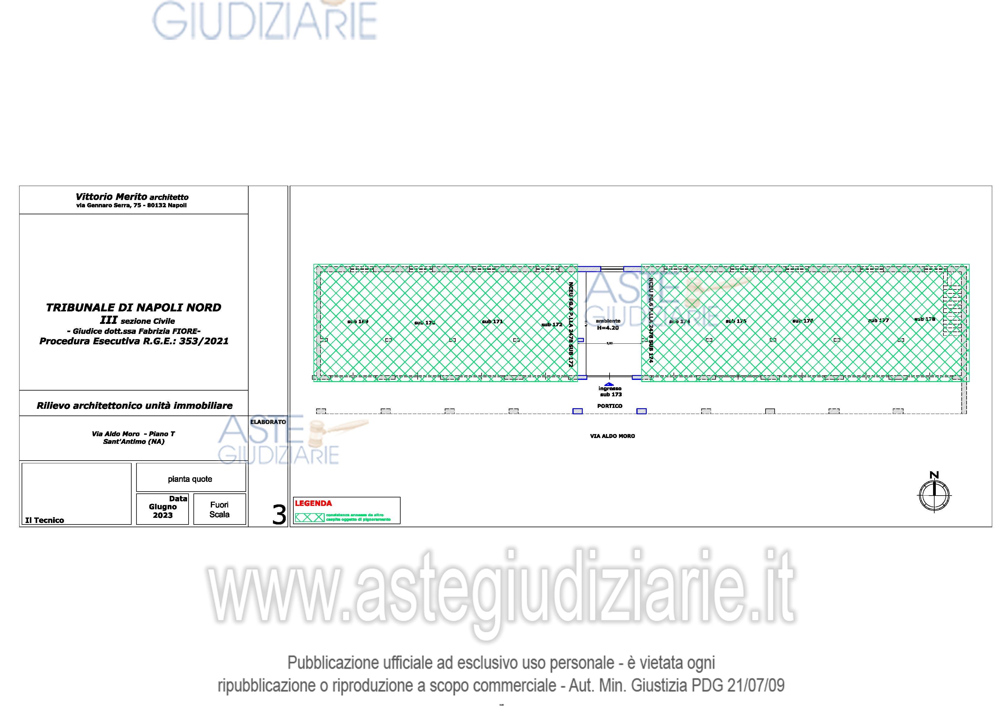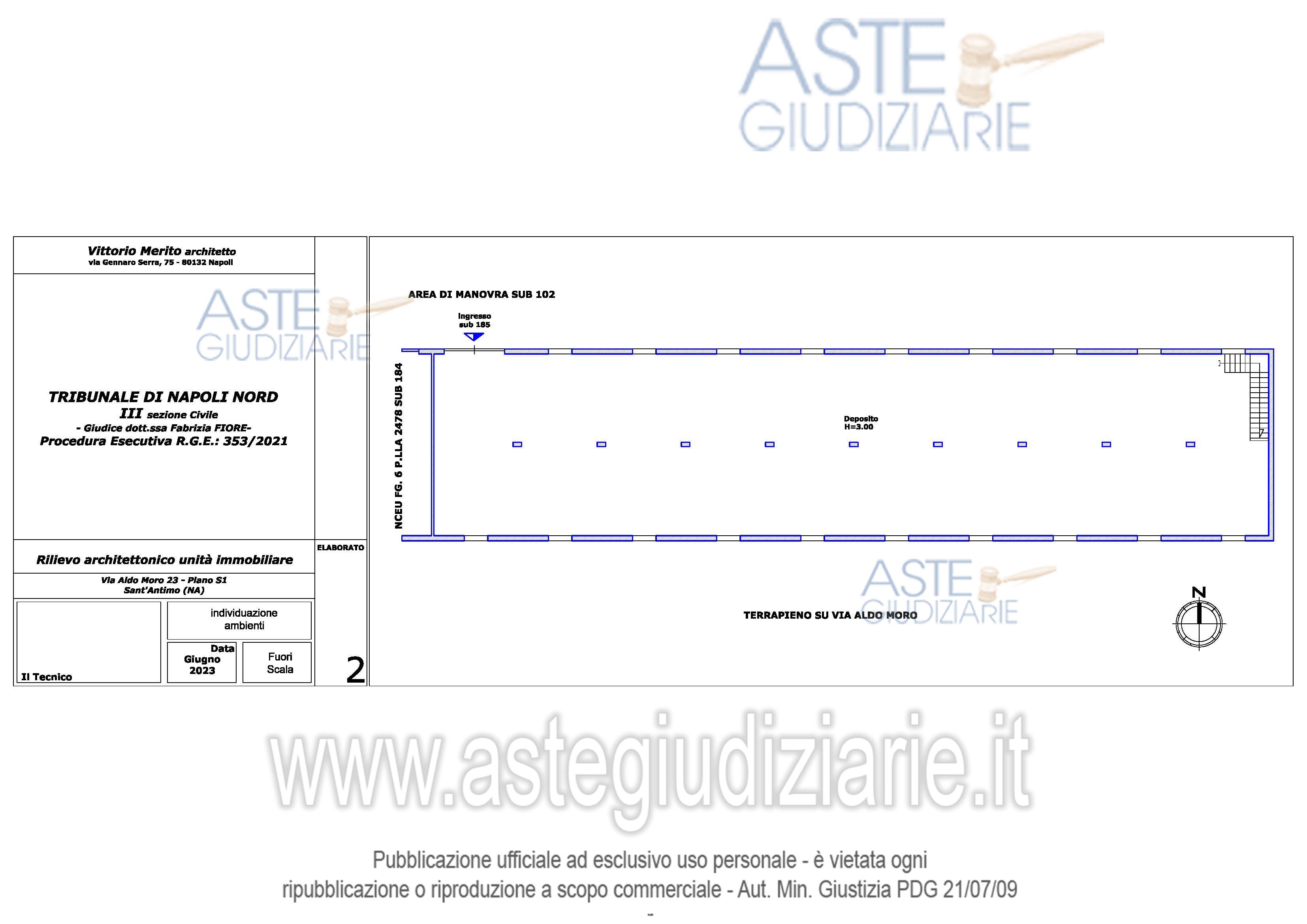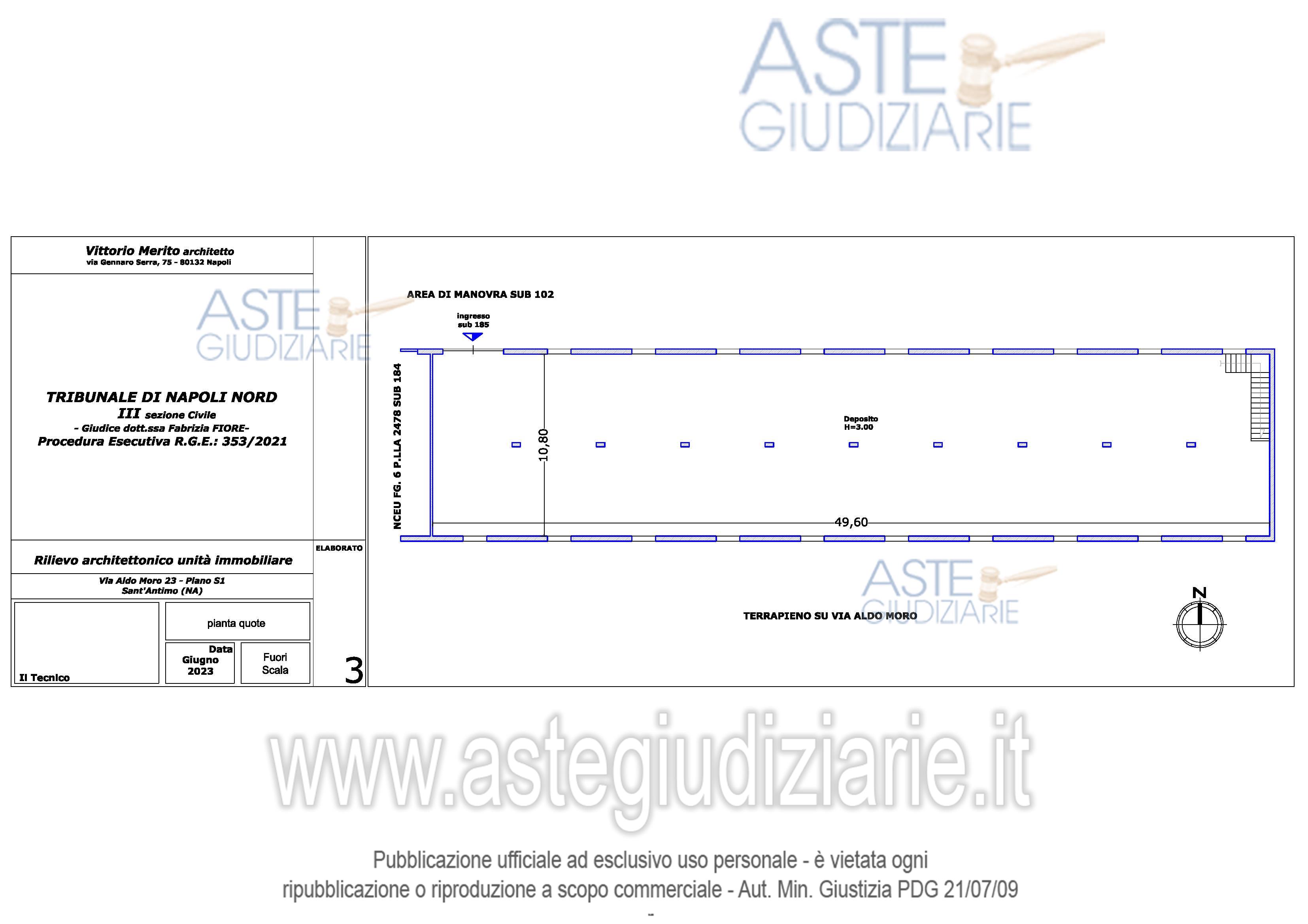 Vendita all'asta Senza incanto, con gara telematica asincrona - LOTTO 3: Locali commerciali: NCEU comune di Sant’Antimo, foglio 6, particella 2478, sub. 169, 170, 171, 172, 173, 174, 175, 176, 177,178, cat. C/1, classe 6, consistenza 39 mq, sup. cat. 46 mq, rendita € 906,38 – via Aldo Moro snc - piano T + Deposito: NCEU comune di Sant’Antimo, foglio 6, particella 2478, sub. 185, cat. C/2, classe 1, consistenza 534 mq, sup. cat. 564 mq, rendita € 827,36 – via Aldo Moro snc - piano S1 . Prezzo base € 631.350,00 (offerta minima € 473.512,50). Data inizio operazioni di vendita: 27/11/2025 ore 16:00. Custode Giudiziario Dott. Francesco Russo - Email "studiocasillorusso@libero.it"; Tel. 0815404454. Rif. Tribunale di Napoli Nord - Esecuzione immobiliare post legge 80 n. 353/2021