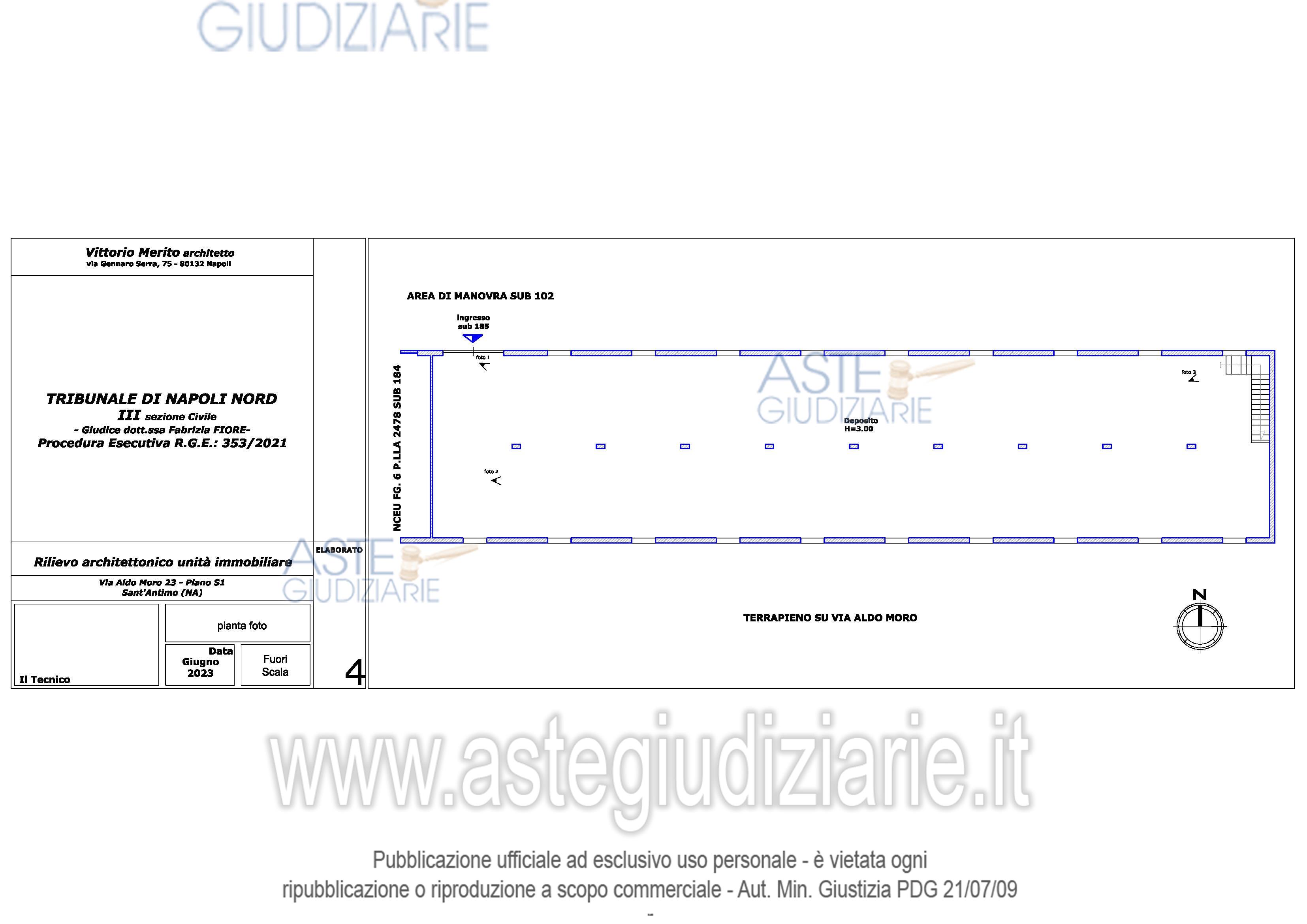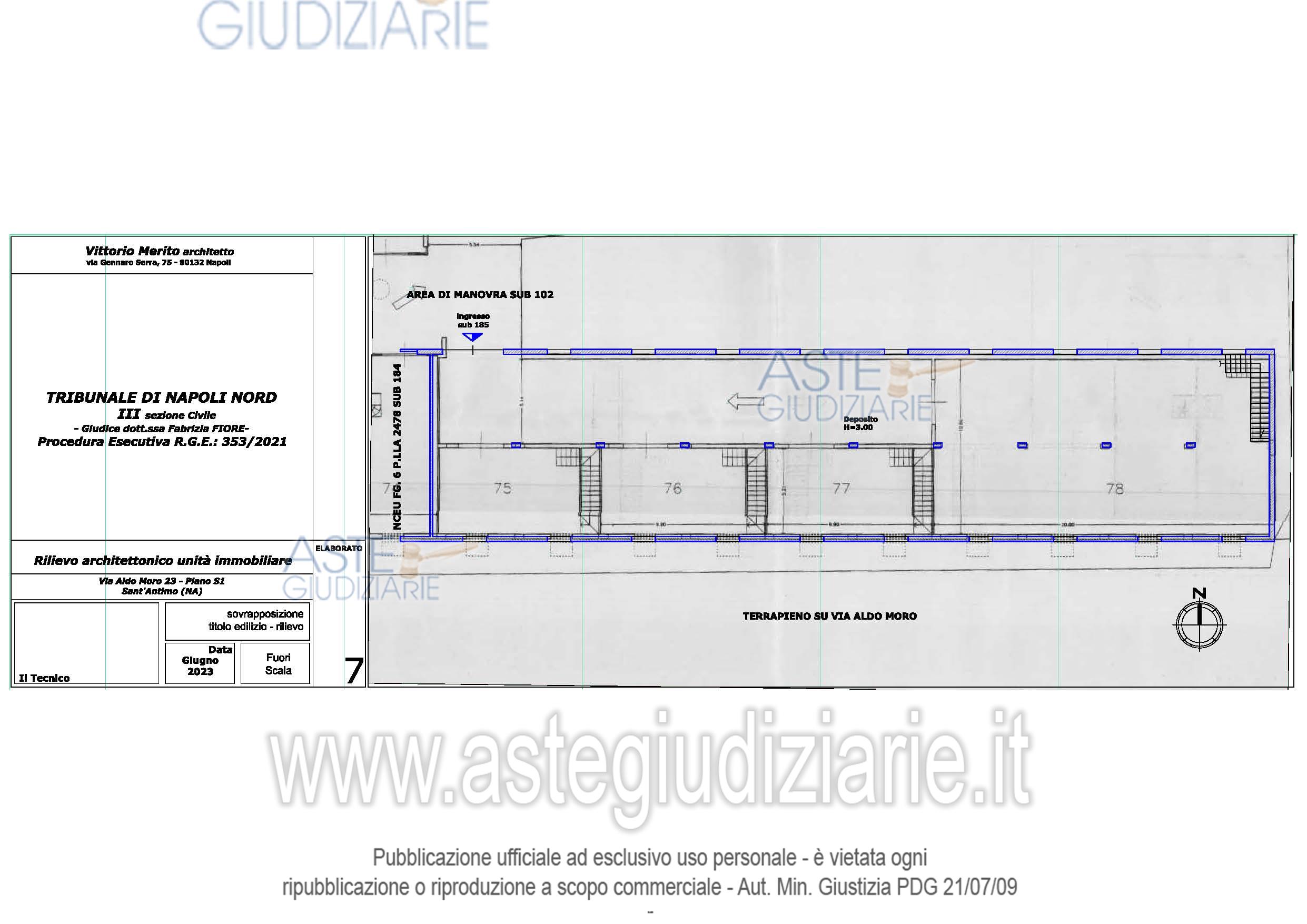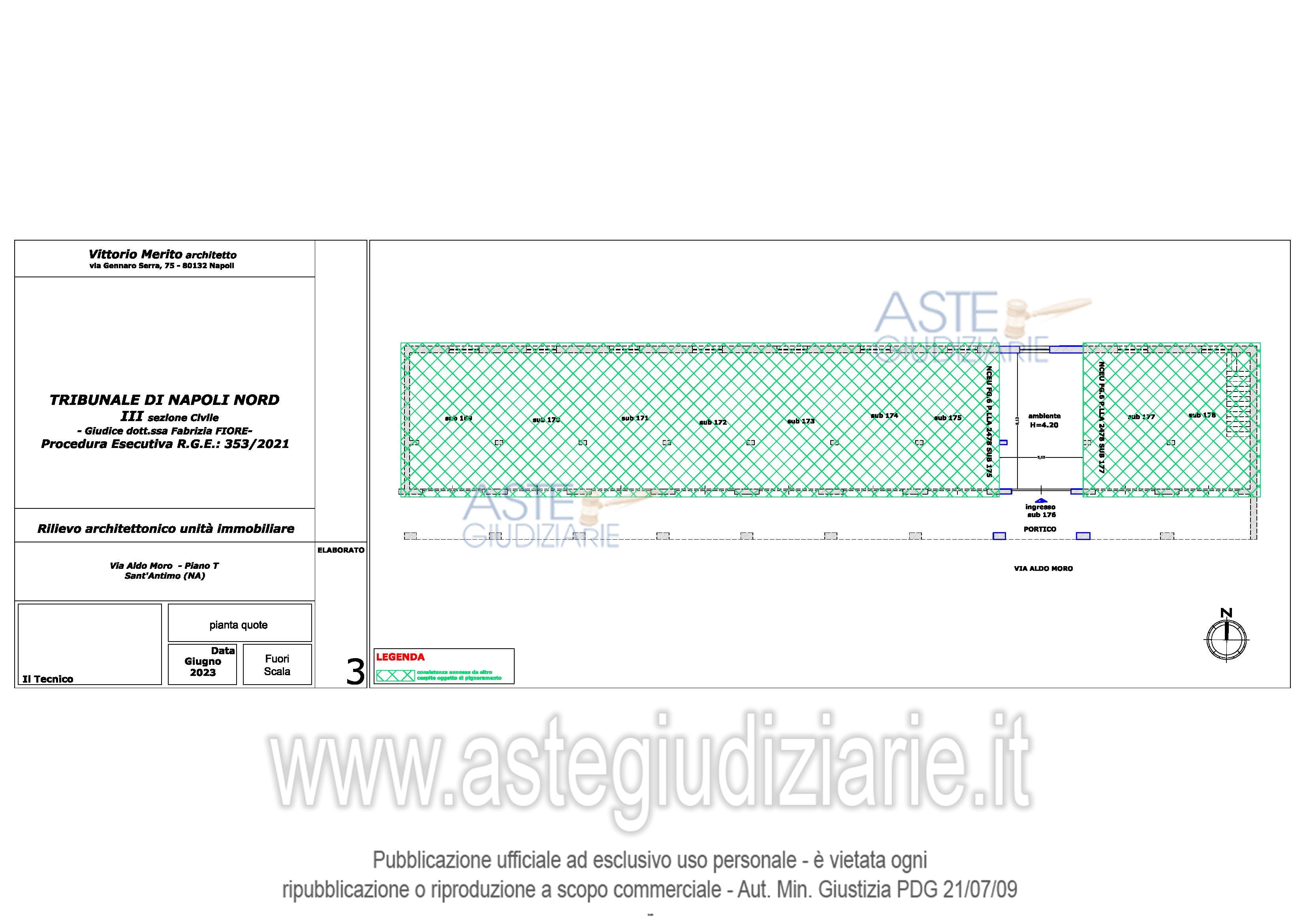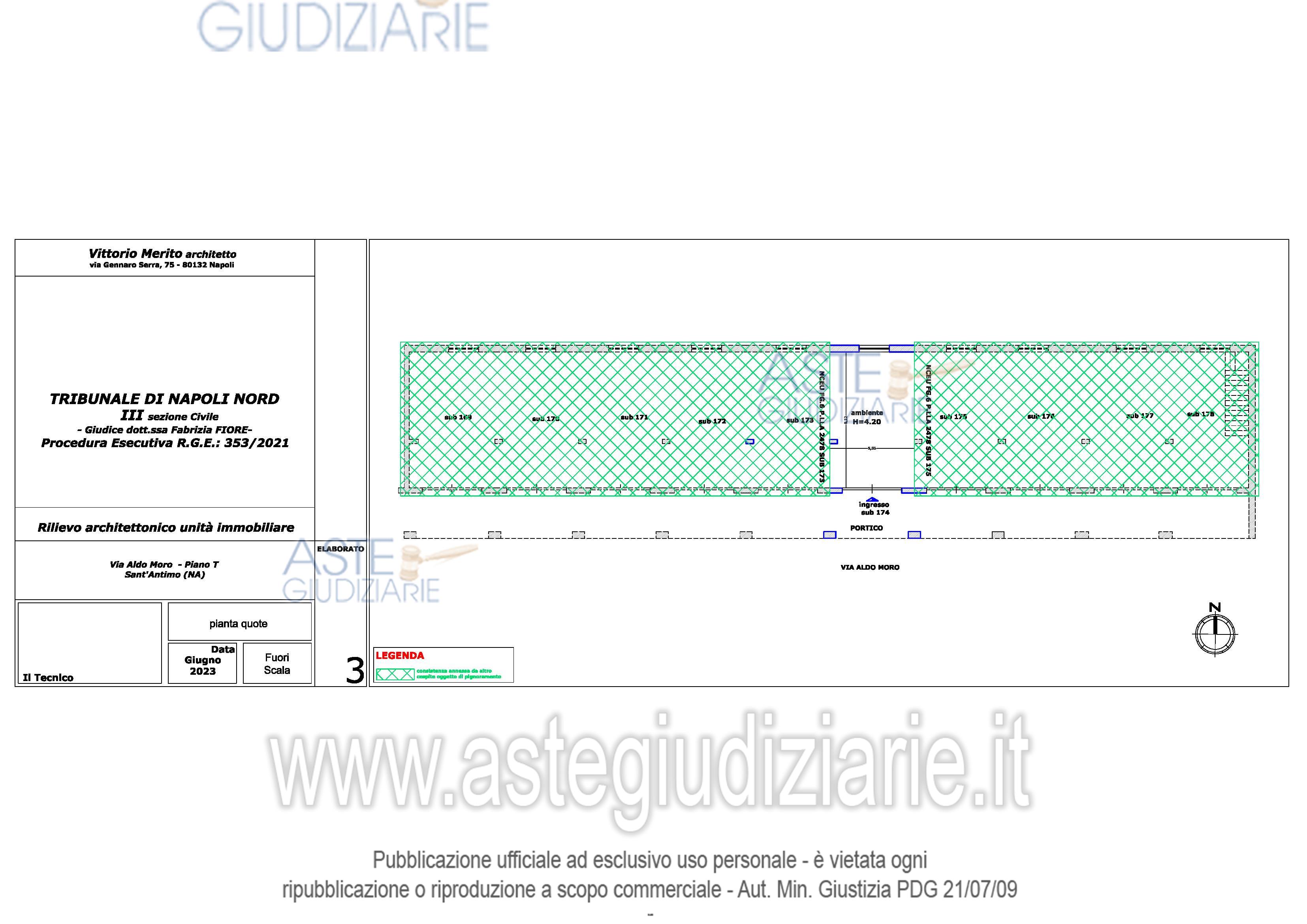 Vendita all'asta Senza incanto, con gara telematica asincrona - LOTTO 3: Locali commerciali: NCEU comune di Sant’Antimo, foglio 6, particella 2478, sub. 169, 170, 171, 172, 173, 174, 175, 176, 177,178, cat. C/1, classe 6, consistenza 39 mq, sup. cat. 46 mq, rendita € 906,38 – via Aldo Moro snc - piano T + Deposito: NCEU comune di Sant’Antimo, foglio 6, particella 2478, sub. 185, cat. C/2, classe 1, consistenza 534 mq, sup. cat. 564 mq, rendita € 827,36 – via Aldo Moro snc - piano S1 . Prezzo base € 631.350,00 (offerta minima € 473.512,50). Data inizio operazioni di vendita: 27/11/2025 ore 16:00. Custode Giudiziario Dott. Francesco Russo - Email "studiocasillorusso@libero.it"; Tel. 0815404454. Rif. Tribunale di Napoli Nord - Esecuzione immobiliare post legge 80 n. 353/2021