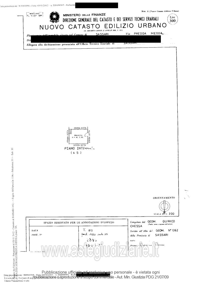 Vendita all'asta Senza incanto - LOTTO 3: L'immobile fa parte del complesso alberghiero – commerciale denominato “Il Vialetto” sito nel Comune di Sassari, località Predda Niedda, fronte S.S. 221 Sassari – Fertilia. In particolare:Piena proprietà di immobile ad uso magazzino ubicato al 4° livello seminterrato, distinto al NCEU del Comune di Sassari al foglio 83 - particella 1180 - sub 35. Prezzo base € 937,50 (offerta minima € 703,12). Data vendita 14/05/2026 ore 09:00. Giudice Dott. Claudia Manconi. Professionista delegato alla vendita Not. Antonietta Piras - Email "apiras.esecuzioni@gmail.com"; Tel. 079273264. Custode Giudiziario Istituto Vendite Giudiziarie Sassari - Email "visitaivgsassari@gmail.com"; Tel. 079260228. Rif. Tribunale di Sassari - Esecuzione immobiliare post legge 80 n. 167/2011