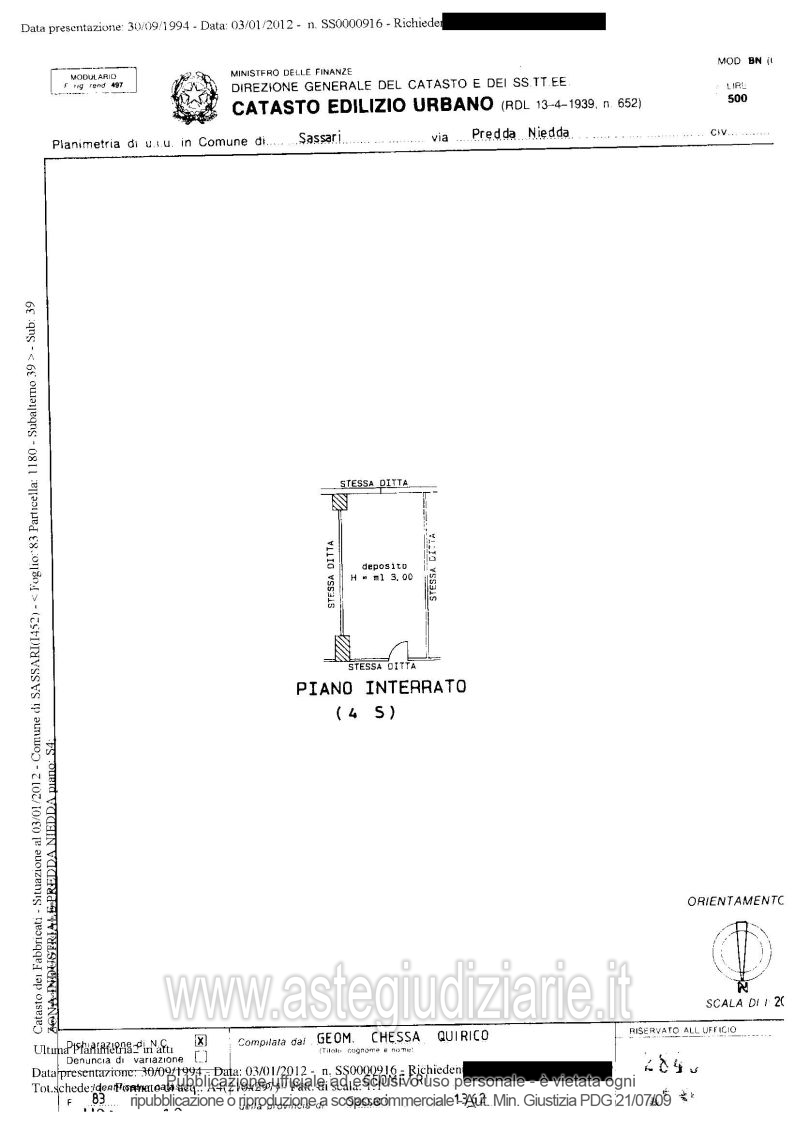Vendita all'asta Senza incanto - LOTTO 7: L'immobile fa parte del complesso alberghiero – commerciale denominato “Il Vialetto” sito nel Comune di Sassari, località Predda Niedda, fronte S.S. 221 Sassari – Fertilia. In particolare:Piena proprietà di immobile ad uso magazzino ubicato al 4° livello seminterrato, distinto al NCEU del Comune di Sassari al foglio 83 - particella 1180 - sub 39. Prezzo base € 1.322,62 (offerta minima € 991,96). Data vendita 14/05/2026 ore 09:00. Giudice Dott. Claudia Manconi. Professionista delegato alla vendita Not. Antonietta Piras - Email "apiras.esecuzioni@gmail.com"; Tel. 079273264. Custode Giudiziario Istituto Vendite Giudiziarie Sassari - Email "visitaivgsassari@gmail.com"; Tel. 079260228. Rif. Tribunale di Sassari - Esecuzione immobiliare post legge 80 n. 167/2011