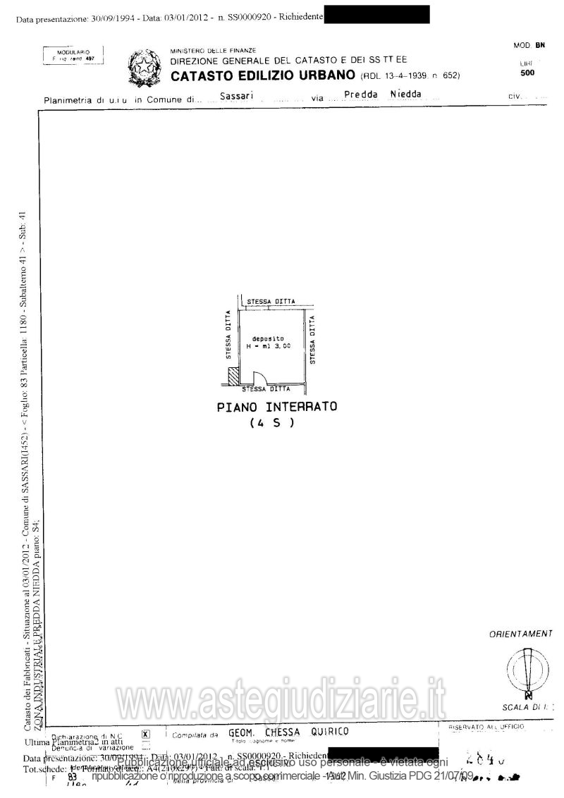 Vendita all'asta Senza incanto - LOTTO 9: L'immobile fa parte del complesso alberghiero – commerciale denominato “Il Vialetto” sito nel Comune di Sassari, località Predda Niedda, fronte S.S. 221 Sassari – Fertilia. In particolare:Piena proprietà di immobile ad uso magazzino ubicato al 4° livello seminterrato, distinto al NCEU del Comune di Sassari al foglio 83 - particella 1180 - sub 41. Prezzo base € 937,50 (offerta minima € 703,12). Data vendita 14/05/2026 ore 09:00. Giudice Dott. Claudia Manconi. Professionista delegato alla vendita Not. Antonietta Piras - Email "apiras.esecuzioni@gmail.com"; Tel. 079273264. Custode Giudiziario Istituto Vendite Giudiziarie Sassari - Email "visitaivgsassari@gmail.com"; Tel. 079260228. Rif. Tribunale di Sassari - Esecuzione immobiliare post legge 80 n. 167/2011