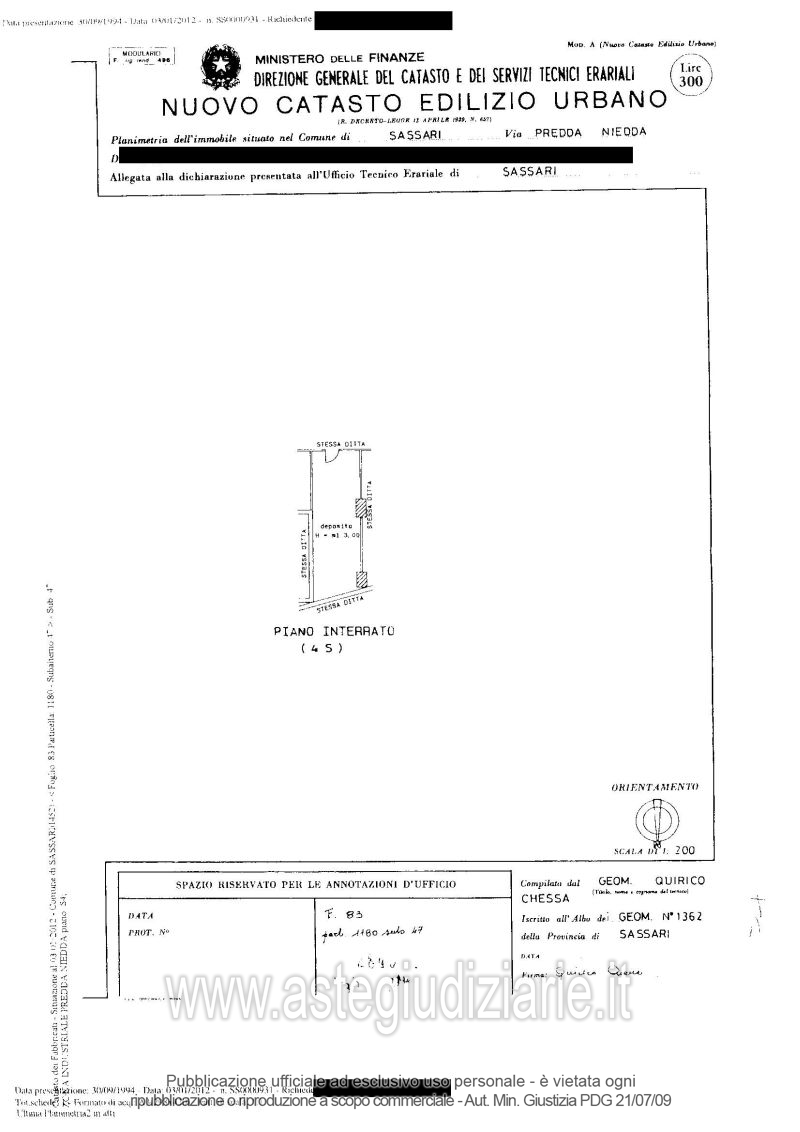 Vendita all'asta Senza incanto - LOTTO 15: L'immobile fa parte del complesso alberghiero – commerciale denominato “Il Vialetto” sito nel Comune di Sassari, località Predda Niedda, fronte S.S. 221 Sassari – Fertilia. In particolare:Piena proprietà di immobile ad uso magazzino ubicato al 4° livello seminterrato, distinto al NCEU del Comune di Sassari al foglio 83 - particella 1180 - sub 47. Prezzo base € 1.287,87 (offerta minima € 965,90). Data vendita 14/05/2026 ore 09:00. Giudice Dott. Claudia Manconi. Professionista delegato alla vendita Not. Antonietta Piras - Email "apiras.esecuzioni@gmail.com"; Tel. 079273264. Custode Giudiziario Istituto Vendite Giudiziarie Sassari - Email "visitaivgsassari@gmail.com"; Tel. 079260228. Rif. Tribunale di Sassari - Esecuzione immobiliare post legge 80 n. 167/2011