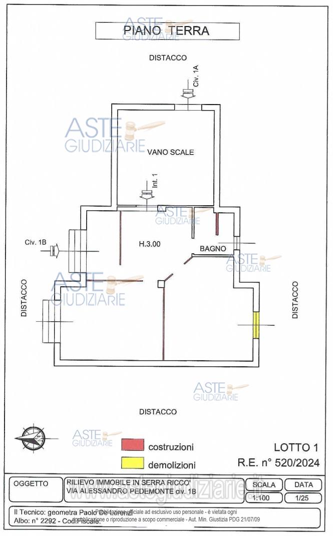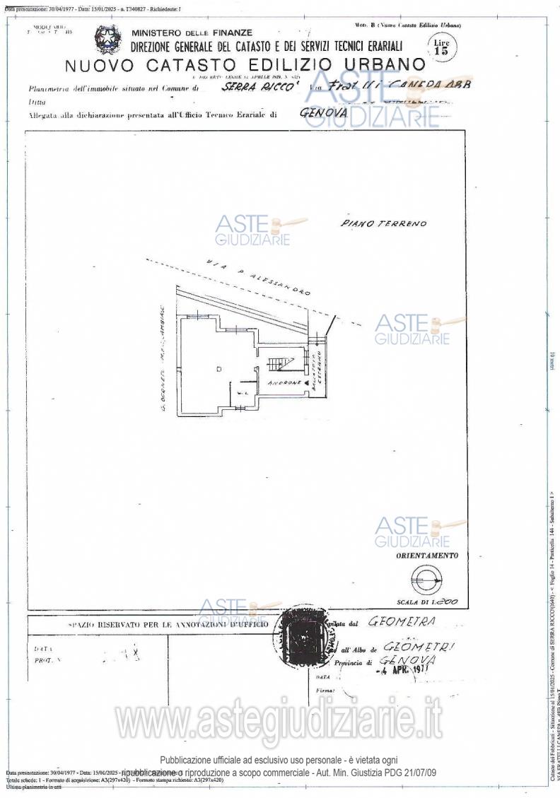 Vendita all'asta Senza incanto, con gara telematica sincrona mista - LOTTO 1: PIENA PROPRIETA' DI MAGAZZINO A SERRA RICCO' (GE) IN VIA ALESSANDRO PEDEMONTE CIV. 1B AL PIANO TERRA CON ANNESSO BAGNO. SUPERFICIE CATASTALE 83 MQ . Prezzo base € 35.242,00 (offerta minima € 26.431,50). Data vendita 10/12/2025 ore 12:00. Professionista delegato alla vendita Avv. Elio Sbisa - Email "elio.sbisa1@gmail.com"; Cell. 3395666960. Custode Giudiziario Ivg Sovemo Srl - Email "visitegenova@sovemo.com"; Tel. 0105299253. Rif. Tribunale di Genova - Esecuzione immobiliare post legge 80 n. 520/2024