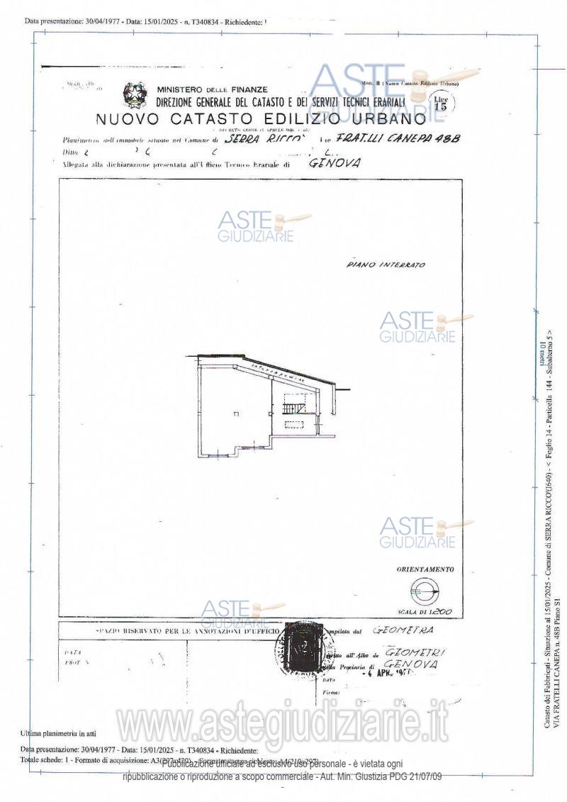 Vendita all'asta Senza incanto, con gara telematica sincrona mista - LOTTO 5: PIENA PROPRIETA' DI LOCALE CARRABILE AD USO MAGAZZINO A SERRA RICC0' (GE) IN VIA ALESSANDRO PEDEMONTE CIV. 1 A AL PIANO SEMINTERRATO COMPOSTO DA UN UNICO LOCALE. SUPERFICIE CATASTALE 82 MQ. Prezzo base € 53.819,00 (offerta minima € 40.364,25). Data vendita 10/12/2025 ore 12:00. Professionista delegato alla vendita Avv. Elio Sbisa - Email "elio.sbisa1@gmail.com"; Cell. 3395666960. Custode Giudiziario Ivg Sovemo Srl - Email "visitegenova@sovemo.com"; Tel. 0105299253. Rif. Tribunale di Genova - Esecuzione immobiliare post legge 80 n. 520/2024