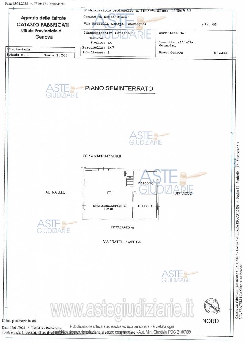 Vendita all'asta Senza incanto, con gara telematica sincrona mista - LOTTO 7: PIENA PROPRIETA' DI LOCALE AD USO MAGAZZINO A SERRA RICCO' (GE) IN VIA FRATELLI CANPEA CIV. 48 A, TRASFORMATO PARZIALMENTE IN LOCALI AD USO COMMERCIALE, POSTO AL PIANO SEMINTERRATO. SUPERFICIE CATASTALE 109 MQ. Prezzo base € 50.941,00 (offerta minima € 38.205,75). Data vendita 10/12/2025 ore 12:00. Professionista delegato alla vendita Avv. Elio Sbisa - Email "elio.sbisa1@gmail.com"; Cell. 3395666960. Custode Giudiziario Ivg Sovemo Srl - Email "visitegenova@sovemo.com"; Tel. 0105299253. Rif. Tribunale di Genova - Esecuzione immobiliare post legge 80 n. 520/2024