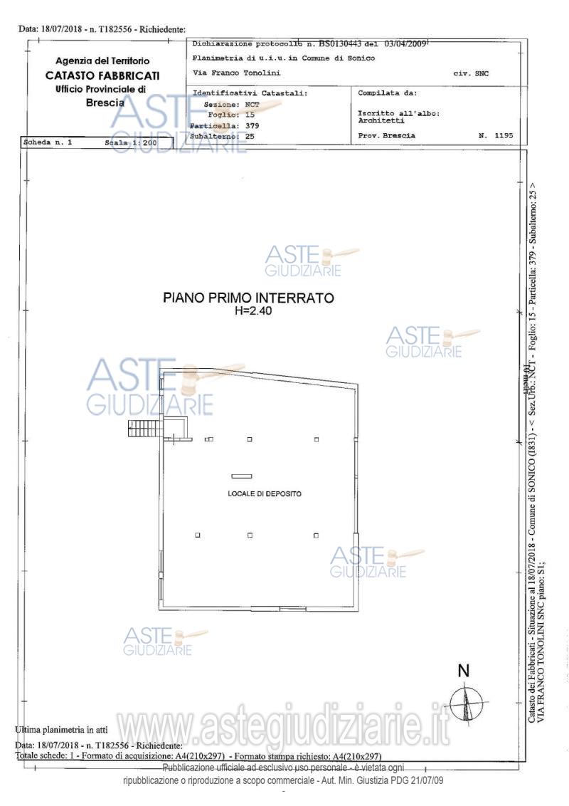 Vendita all'asta Senza incanto, con gara telematica asincrona - LOTTO 7: Deposito al piano interrato.Competono Quote Proporzionali su parti comuni. Prezzo base € 21.627,95 (offerta minima € 16.220,96). Data inizio operazioni di vendita: 11/06/2026 ore 10:30. Professionista delegato alla vendita: Not. Luigi Grasso Biondi - Tel. 030/222849.