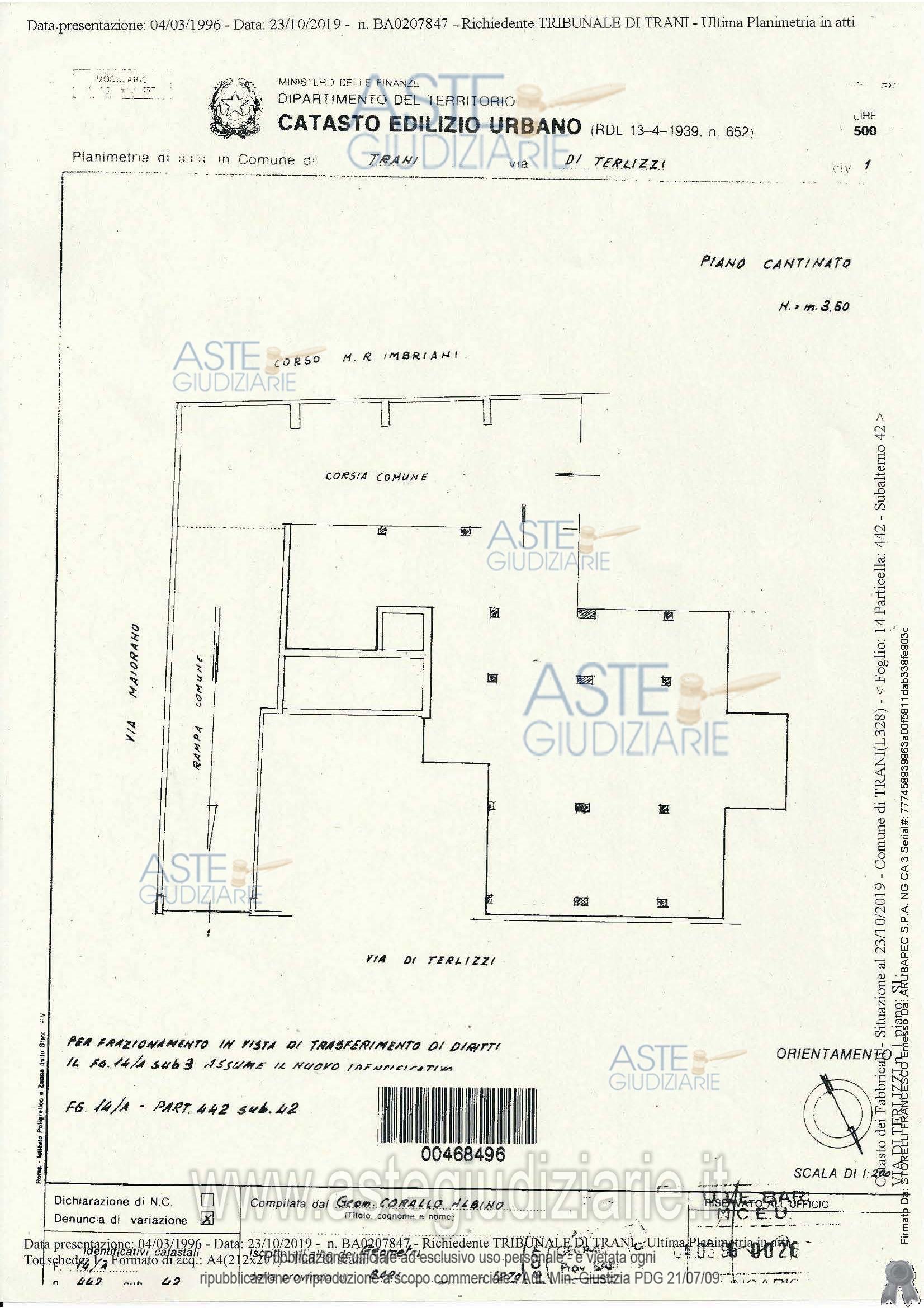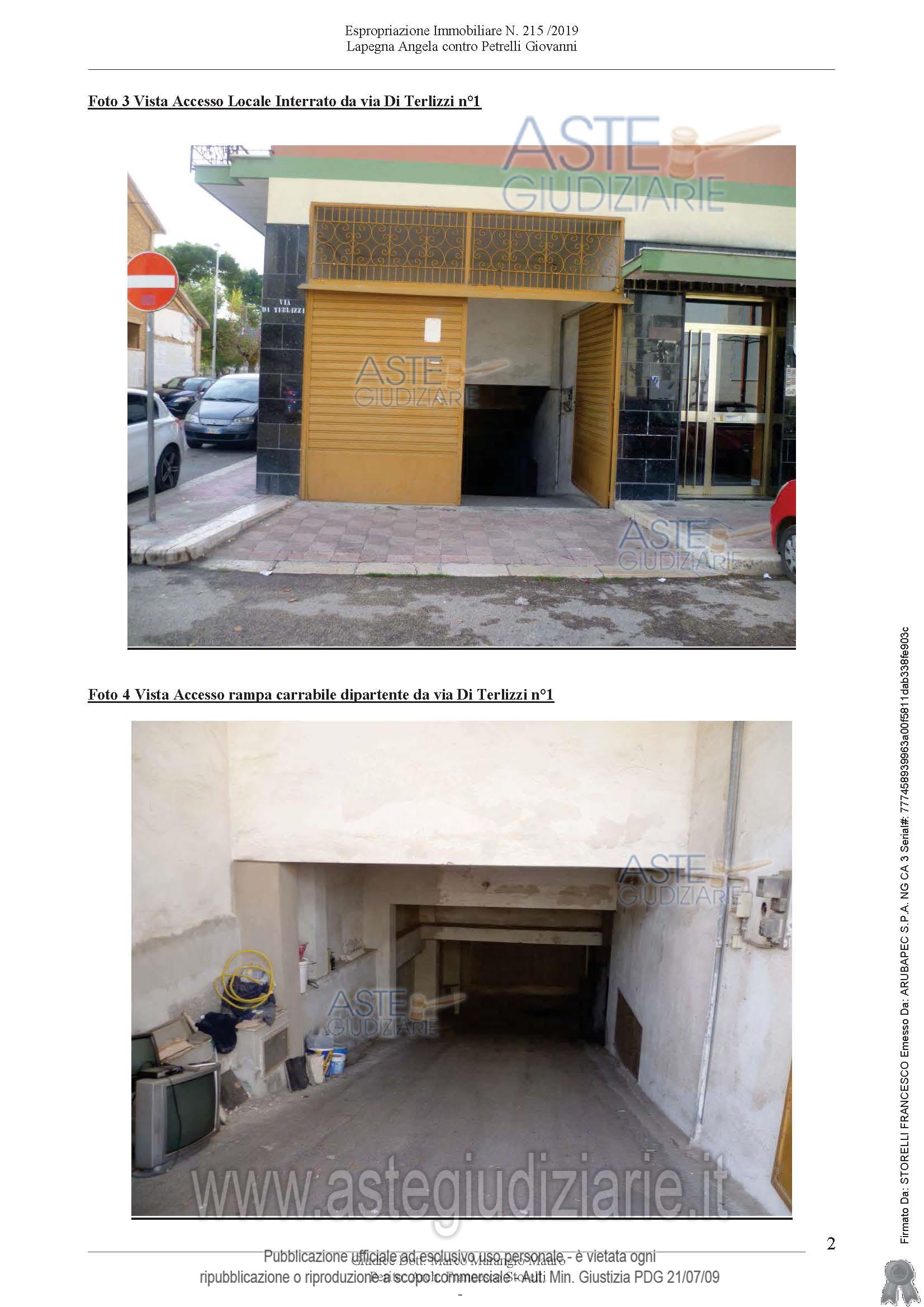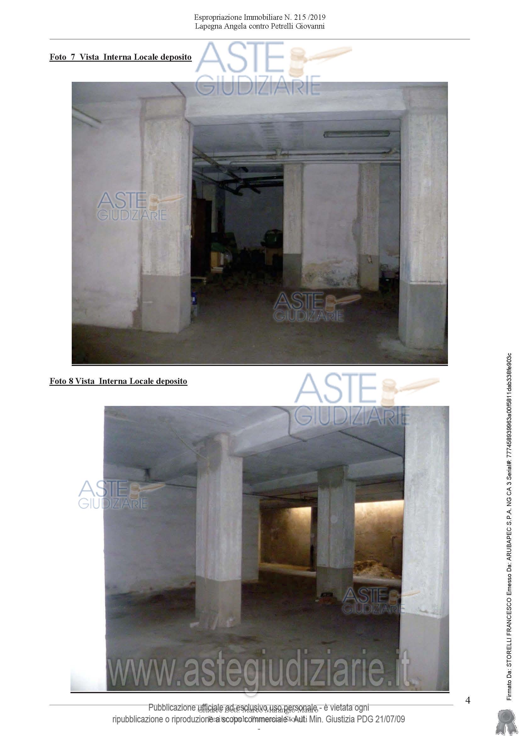 Vendita all'asta Senza incanto, con gara telematica sincrona - LOTTO 01: PIENA PROPRIETA' DEPOSITO INTERRATO. Prezzo base € 159.728,25 (offerta minima € 119.797,00). Data vendita 18/03/2026 ore 10:00. Giudice Dott. Diletta Calò. Professionista delegato alla vendita Avv. Vincenza Gianfrancesco - Tel. 080 3971801. Custode Giudiziario Avv. Vincenza Gianfrancesco - Email "vincenza.gianfrancesco@gmail.com"; Tel. 080 3971801. Rif. Tribunale di Trani - Esecuzione immobiliare post legge 80 n. 215/2019