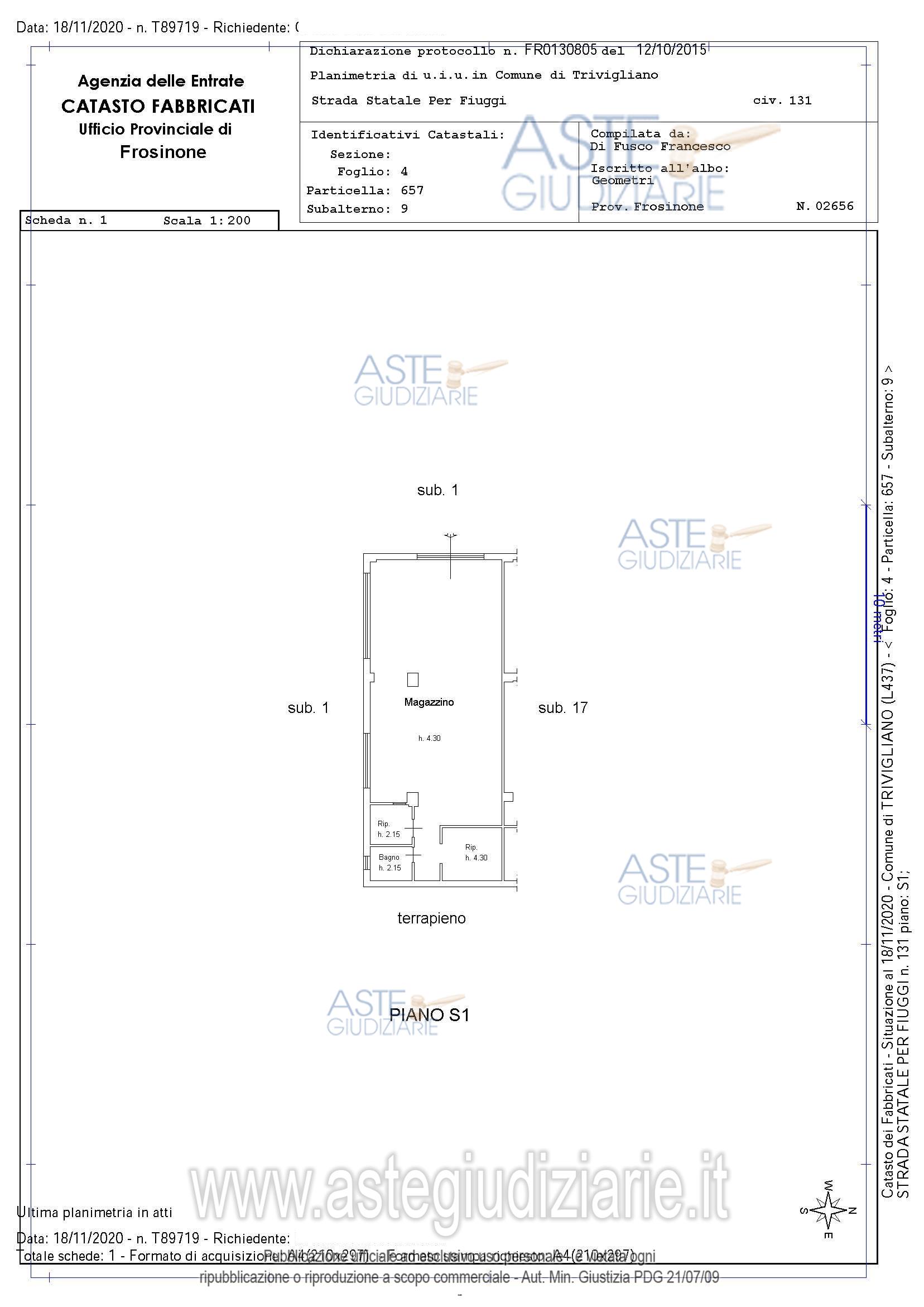 Vendita all'asta Senza incanto, con gara telematica asincrona - LOTTO 1: Ownership share equal to half of the bare ownership right of two warehouse spaces with a front parking area and driveway access. Prezzo base € 5.049,84 (offerta minima € 4.292,36). Data inizio operazioni di vendita: 11/06/2026 ore 10:00. In caso di più offerte valide si procederà a gara che inizierà il 11/06/2026 ore 10:00 e terminerà il 17/06/2026 ore 10:00. Giudice Dott. Simona Di Nicola. Professionista delegato alla vendita Dott. Angela Donatella Fiorella - Tel. 340 3836938. Rif. Tribunale di Frosinone - Liquidazione del patrimonio del debitore n. 1/2020