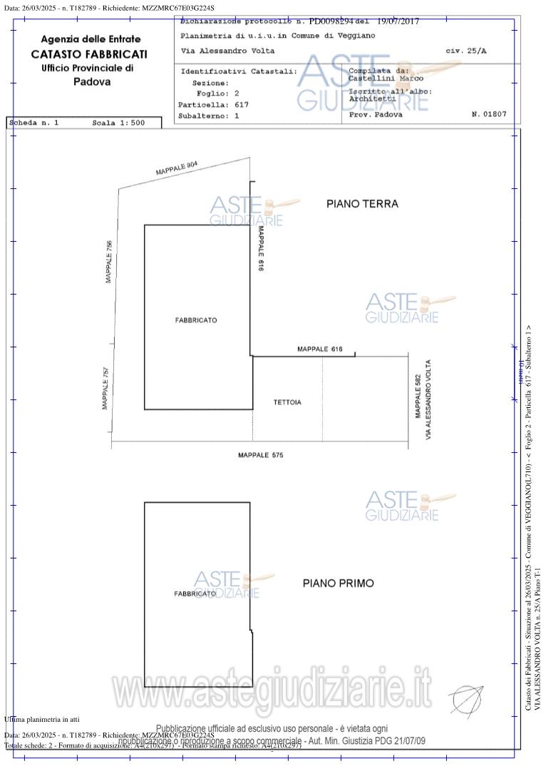 Vendita all'asta Senza incanto, con gara telematica sincrona - LOTTO UNICO: Piena proprietà di un magazzino/deposito ad uso commerciale, sito in via Alessandro Volta n. 25/A in Comune di Veggiano (PD), costituito da un ambiente principale di circa 590 mq lordi con altezza di circa 6,2 m, destinato a magazzino e deposito ad uso commerciale, dai locali fronte strada sviluppati su due piani fuori terra di circa 110 mq lordi ciascuno, destinati ad uso ufficio e servizi igienici e da un’area scoperta di circa 1.078 mq destinata a parcheggi, area di manovra e tettoia. Prezzo base € 381.000,00 (offerta minima € 285.750,00). Data vendita 29/05/2026 ore 15:00. Giudice Rossi. Professionista delegato alla vendita Dott. Andrea Fontana - Email "visiteimmobili@fsst.it"; Tel. 0498762588. Custode Giudiziario Dott. Andrea Fontana - Email "visiteimmobili@fsst.it"; Tel. 0498762588. Rif. Tribunale di Padova - Espropriazione immobiliare (cartabia) n. 42/2025