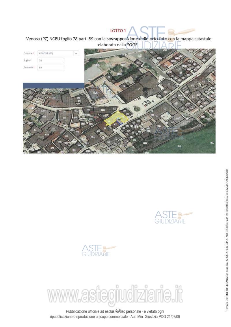 Vendita all'asta Senza incanto, con gara telematica asincrona - LOTTO 1: Piena ed intera proprietà di un locale magazzino in Venosa (PZ) al Vico dell’Arco n. 12, piano terra, individuato in C.F. Foglio 78, Particella 89, subalterno 5, Categoria C/2, Classe 7, consistenza 17 mq, R.C. € 48,29. Prezzo base € 5.940,00 (offerta minima € 4.455,00). Data inizio operazioni di vendita: 02/12/2025 ore 16:00. Professionista delegato alla vendita Avv. Francesco Sarno - Email "franc.sarno@gmail.com"; Cell. 3294957290; Tel. 09711566759. Custode Giudiziario Avv. Francesco Sarno - Email "franc.sarno@gmail.com"; Cell. 3294957290; Tel. 09711566759. Rif. Tribunale di Potenza - Esecuzione immobiliare post legge 80 n. 73/2021