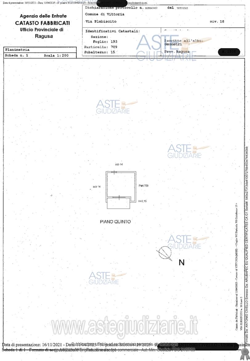 Vendita all'asta Senza incanto, con gara telematica sincrona mista - LOTTO 2: Unità immobiliare della superficie di circa mq 22,00 compreso il balcone con pertinenze, attinenze e dipendenze, e con comproprietà di tutti i corpi dello stabile, comuni per legge e per destinazione, ubicata al 5° piano del fabbricato in Scoglitti (Vittoria) via Plebiscito n. 18. Il cespite, catastalmente censito come C/2 (magazzino), è strutturato come monolocale con wc e relativo balcone in parte coperto. L'immobile presenta irregolarità catastali da regolarizzare a cura e spese dell'aggiudicatario. Prezzo base € 16.200,00 (offerta minima € 12.150,00). Data vendita 15/01/2026 ore 17:00. Giudice Antonio Pianoforte. Professionista delegato alla vendita Avv. Pietro Sortino - Email "avv.pietrosortino@tiscali.it"; Cell. 3332564526; Tel. 0932752884. Custode Giudiziario Avv. Pietro Sortino - Email "avv.pietrosortino@tiscali.it"; Cell. 3332564526; Tel. 0932752884. Rif. Tribunale di Ragusa - Espropriazione immobiliare (cartabia) n. 329/2024