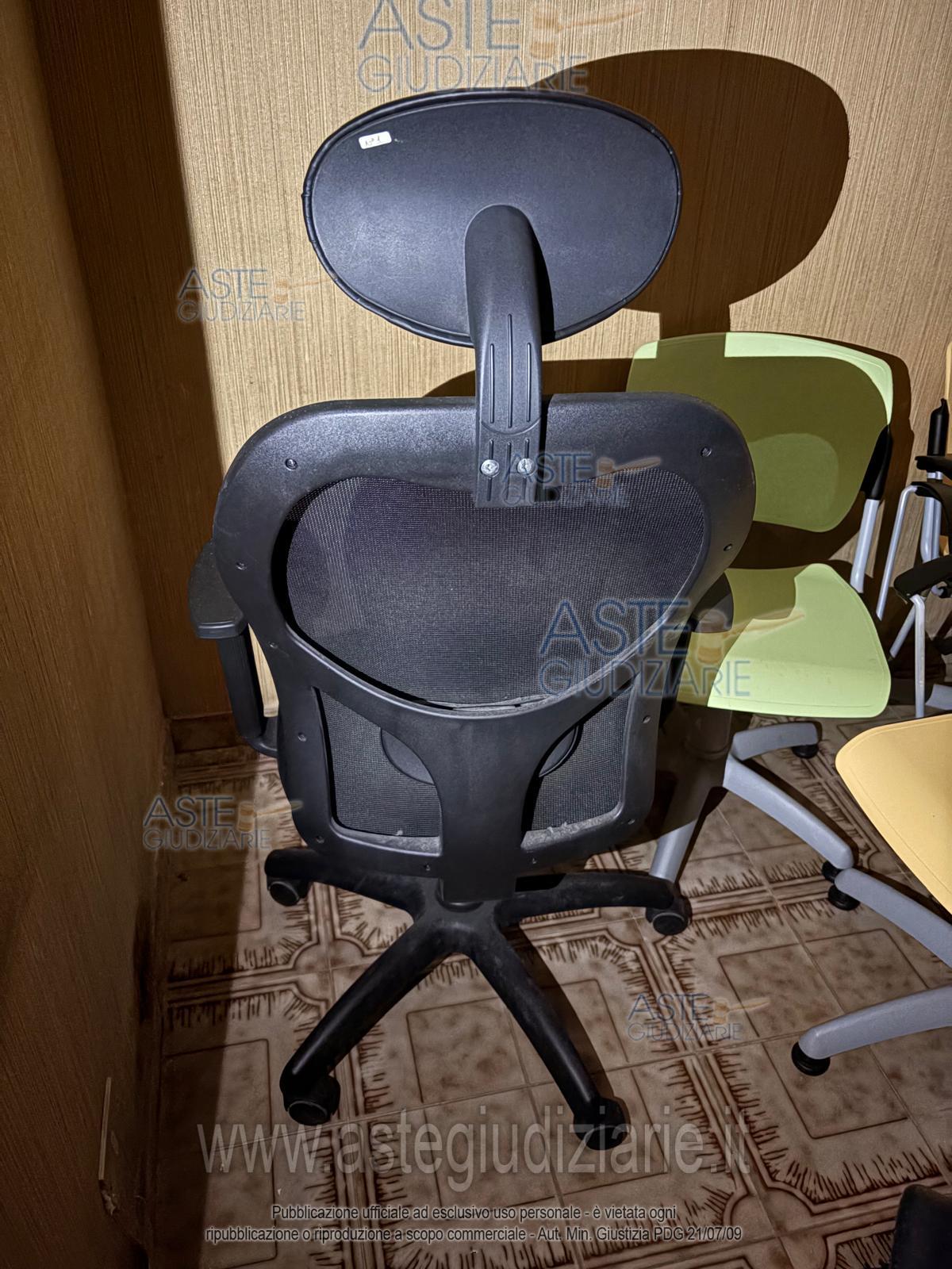 Vendita all'asta Con incanto, con gara telematica asincrona - LOTTO 8: N. 1 (uno) poltrona nera da scrivania trovata dal commissionario come segue: In buone condizioni, come da foto che si allegano. Prezzo base € 40,00 (offerta minima € 40,00). Data vendita: dal 18/03/2026 ore 11:00 al 25/03/2026 ore 11:00. Giudice Dott. Francesco Rio. Rif. Tribunale di Ragusa - Esecuzioni mobiliari con vendita post legge 80 n. 599/2025