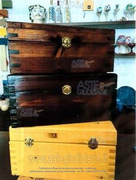Vendita all'asta Con incanto, con gara telematica asincrona - LOTTO 39: N. 5 cassette in legno fatte a mano. Prezzo base € 125,00 (offerta minima € 125,00). Data vendita: dal 28/04/2026 ore 11:00 al 05/05/2026 ore 11:00. Giudice Dott. Salvatrice Gurrieri. Rif. Tribunale di Ragusa - Esecuzioni mobiliari con vendita post legge 80 n. 1350/2025