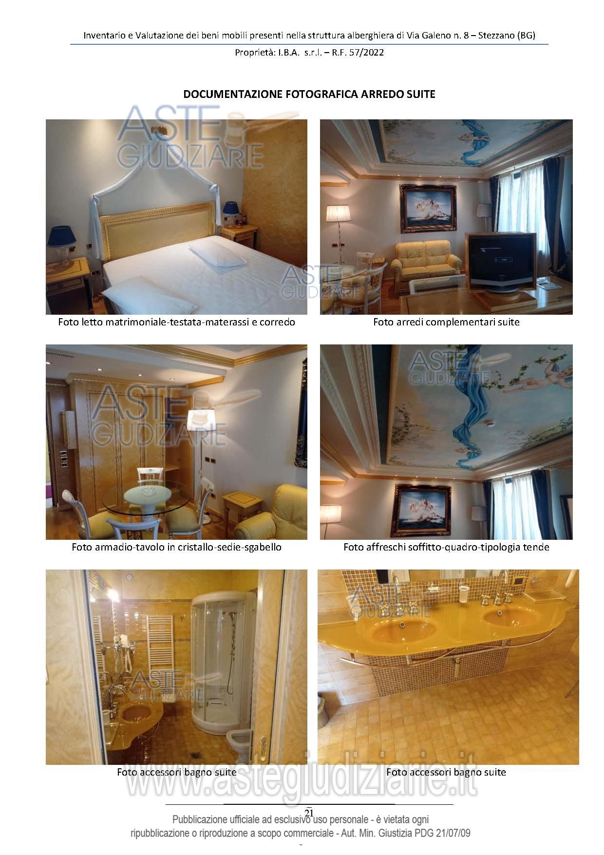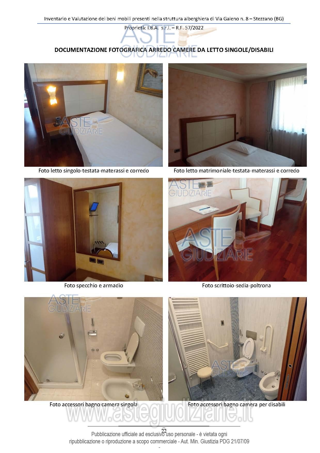 Vendita all'asta Senza incanto, con gara telematica sincrona mista - LOTTO UNICO: Lotto unico composto da: - arredi/complementi di arredo camere da letto; - attrezzature/arredi bagno asserviti alle camere da letto e alla struttura alberghiera; - arredi/complementi di arredo altri locali; - arredi/complementi di arredo zona wellness; - arredi/attrezzature di cucina; - arredi/attrezzature di vario genere. Prezzo base € 100.000,00 (offerta minima € 100.000,00). Data vendita 09/12/2025 ore 11:30. Giudice Dott. Luca Fuzio. Curatore Dott. Emilio Flores - Email "segreteria@studioflores.it"; Tel. 035220400. Rif. Tribunale di Bergamo - Fallimentare (nuovo rito) n. 57/2022