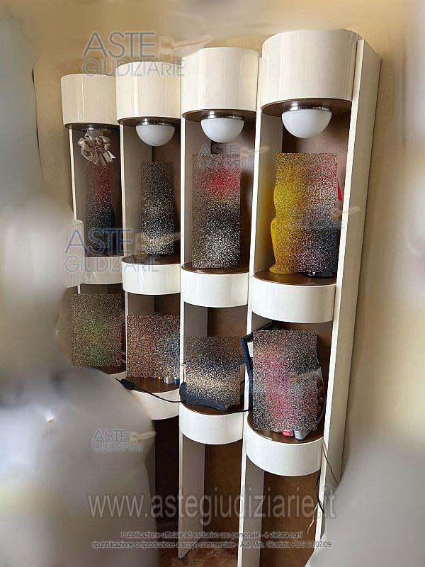 Vendita all'asta Con incanto, con gara telematica asincrona - LOTTO 5: N. 1 tavolo bar di colore bianco con vetro a forma circolare, più parete bar con 8 ripiani di forma circolare, in buone condizioni salvo la normale usura dovuta al tempo. Prezzo base € 200,00. Data vendita: dal 08/06/2026 ore 11:00 al 15/06/2026 ore 11:00. Giudice: Francesco Rio.