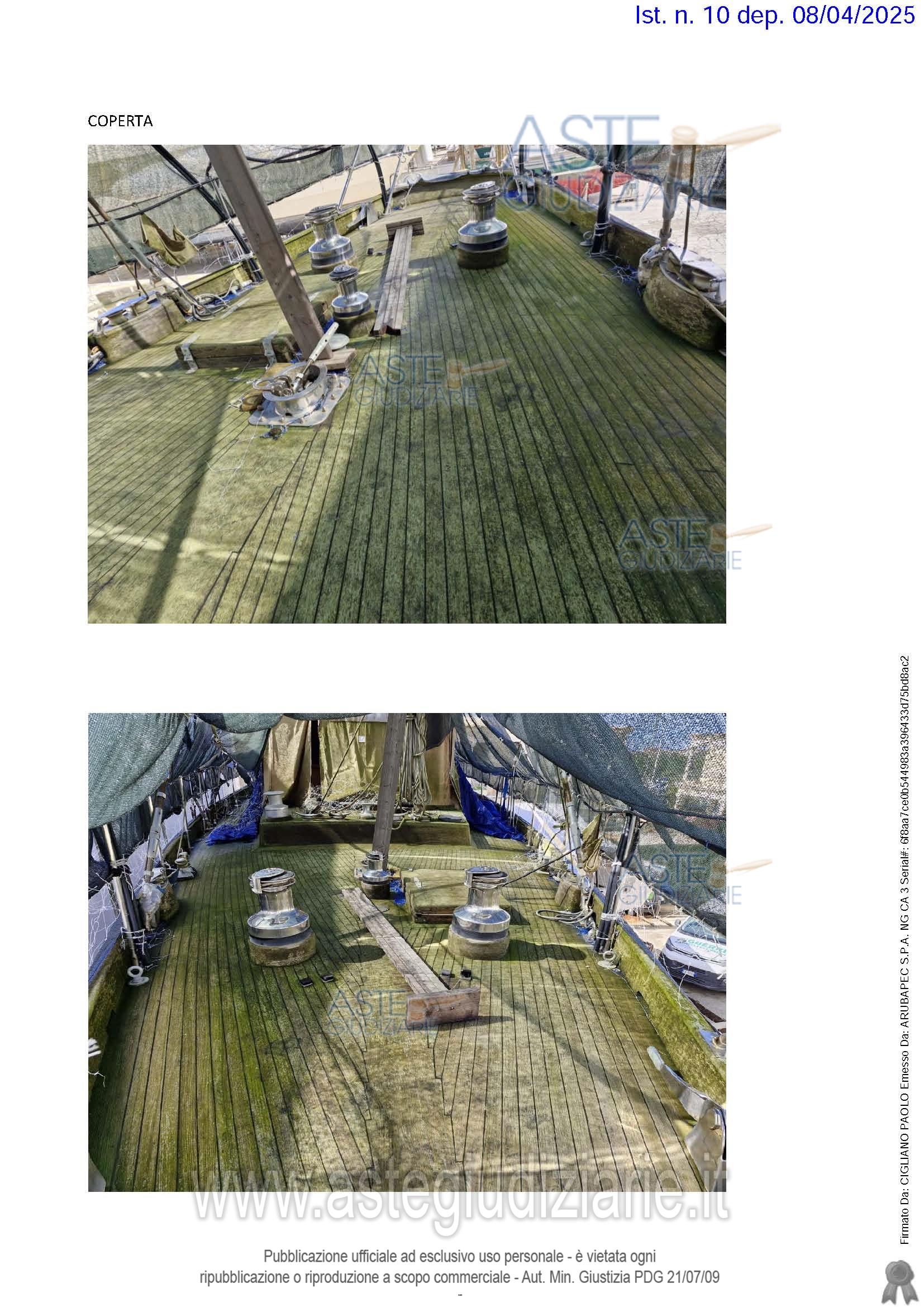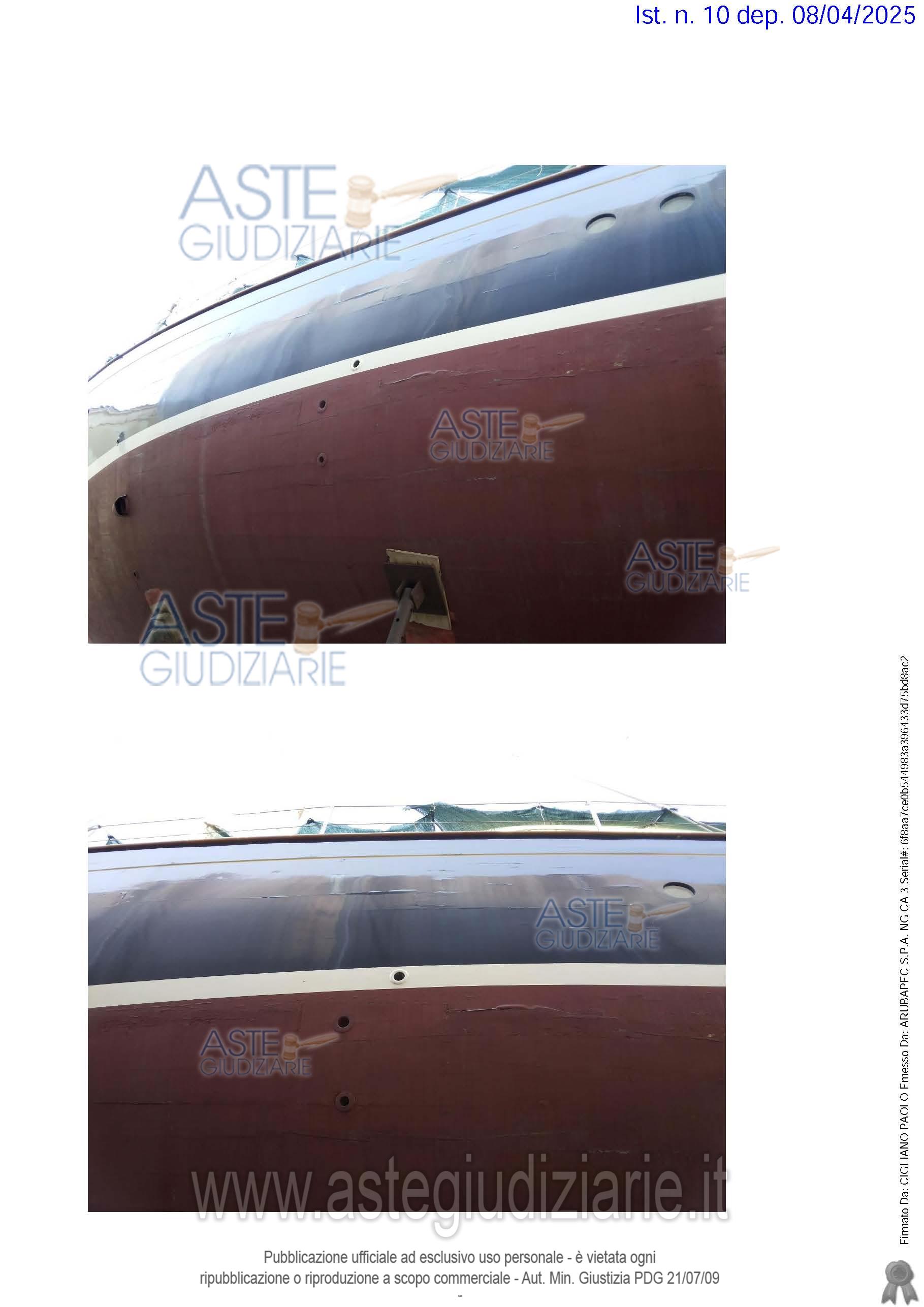 Vendita all'asta Con incanto - LOTTO UNICO: Imbarcazione da diporto denominata “KERILOS” avente targa SP 1927D. Costruita in legno nell’anno 1961 dal cantiere navale Ital Porta a Mare. Propulsione a vela armata con 2 alberi; motore ausiliario entrobordo costruiti dalla ditta General Motor nell’anno 1960 alimentato a gasolio. Lunghezza della barca mt. 23,80 e larghezza mt. 5,44. Comando del Timone a distanza a ruota di tipo meccanico”. Prezzo base € 192.000,00. Data vendita 03/03/2026 ore 11:30. Giudice Stefano Palmaccio. Rif. Tribunale di Civitavecchia - Esecuzioni mobiliari con vendita post legge 80 n. 789/2024