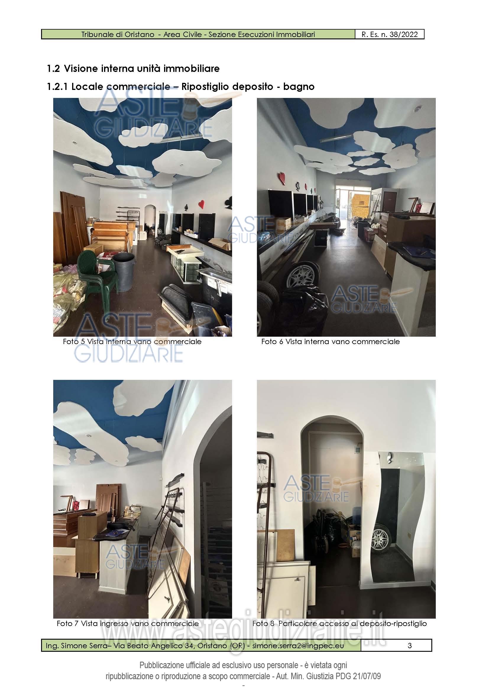 Vendita all'asta Senza incanto, con gara telematica sincrona - LOTTO UNICO: unità immobiliare ad uso commerciale. Prezzo base € 17.489,92 (offerta minima € 13.117,44). Data vendita 19/02/2026 ore 18:00. Professionista delegato alla vendita Avv. Maurizio Santarelli - Email "avv.msantarelli@tiscali.it"; Tel. 3388006877. Custode Giudiziario Ivg Sardegna - Email "visite.ivgoristano@gmail.com"; Tel. 079630505. Rif. Tribunale di Oristano - Esecuzione immobiliare post legge 80 n. 38/2022