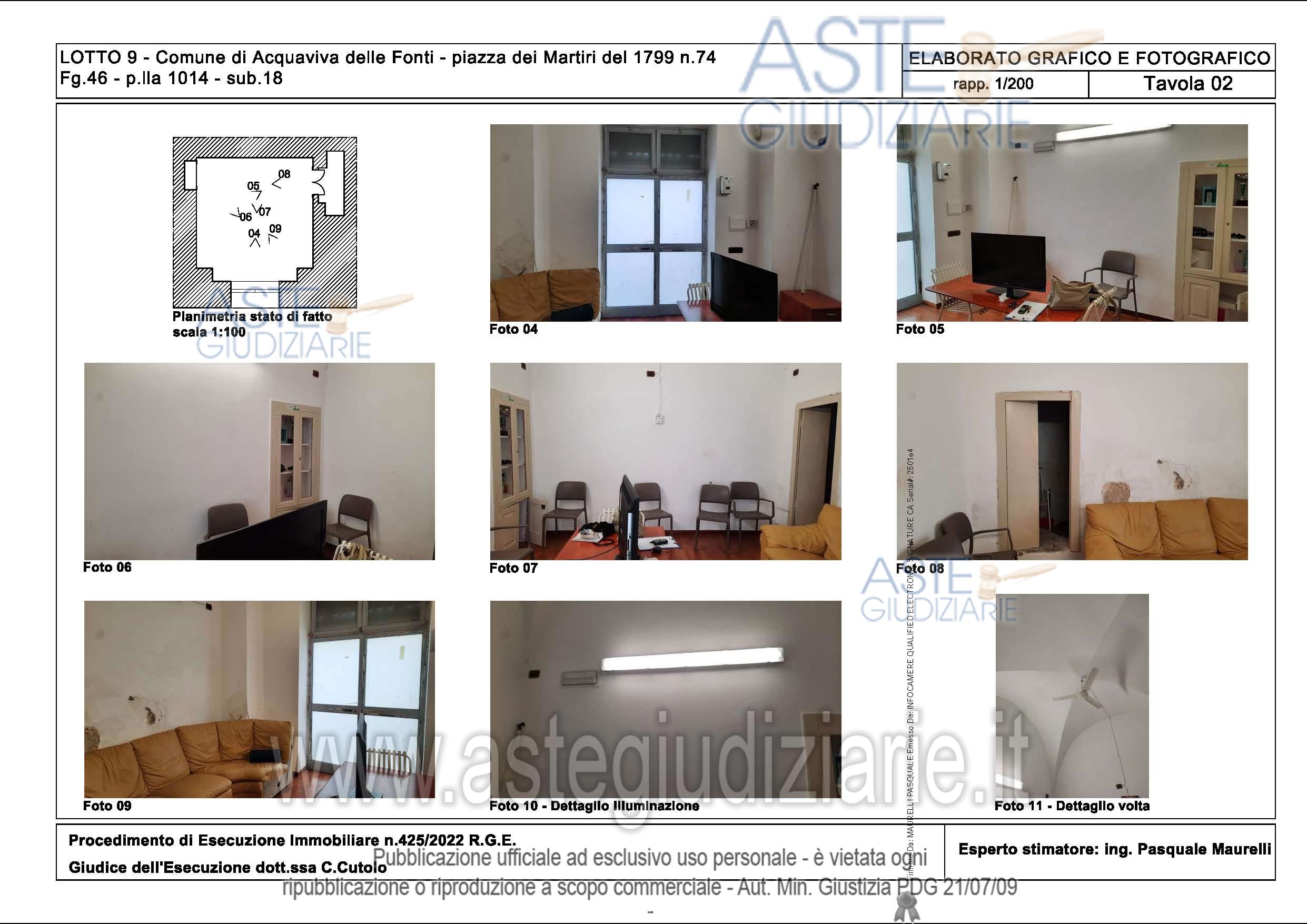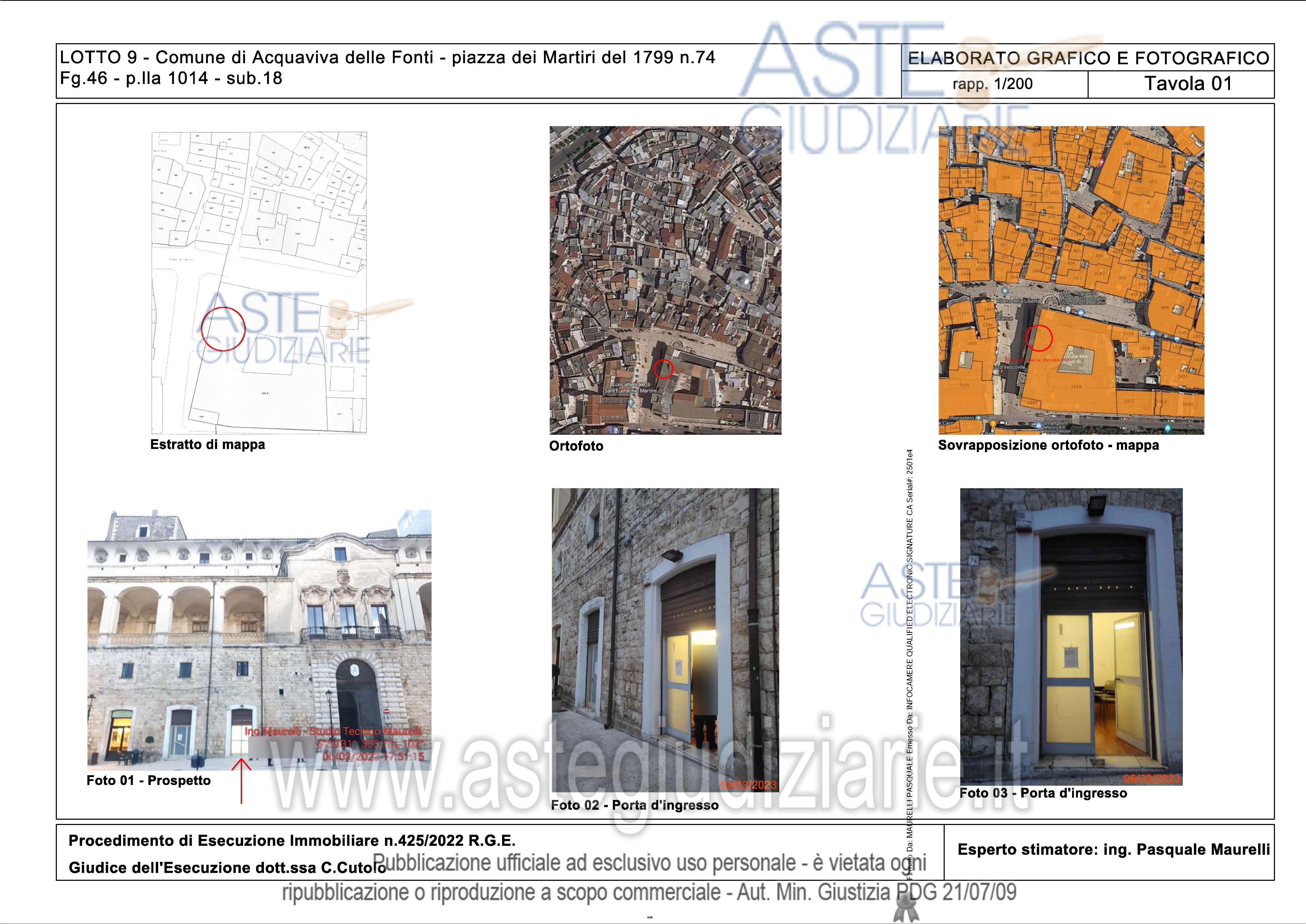 Vendita in attesa dell'emissione del nuovo bando d'asta. LOTTO 9: Piena proprietà di locale a piano terra di Palazzo De Mari, una struttura in stile barocco che ha inglobato tra le sue mura l’antico castello normanno del XII secolo e che oggi ospita la sede del Municipio.L’ingresso, a piano terra, è delimitato da una cornice in pietra ed è protetto da una saracinesca in ferro; la porta d’ingresso è in ferro e vetro e dà accesso ad un ambiente sormontato da una volta a crociera; è presente anche un piccolo vano ripostiglio. La pavimentazione è in parquet. Ultimo prezzo base € 24.500,00 (offerta minima € 18.375,00). Giudice Dott. Chiara Cutolo. Professionista delegato alla vendita Avv. Laura Petruzzi - Email "lara.petruzzi@alice.it". Custode Giudiziario Avv. Laura Petruzzi - Email "lara.petruzzi@alice.it". Rif. Tribunale di Bari - Esecuzione immobiliare post legge 80 n. 425/2022