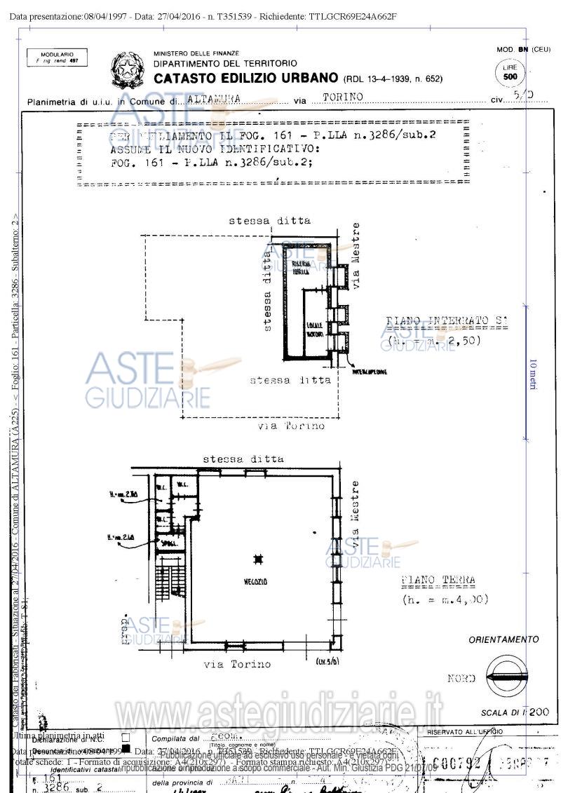 Vendita all'asta Senza incanto, con gara telematica asincrona - LOTTO 2: Piena proprietà del locale commerciale al piano terra ubicato in Altamura alla via Mestre n. 38, posto ad angolo tra via Torino e via Mestre; composto da due unità catastali, con superficie netta di mq 145 e mq 162, e due vani tecnici al piano interrato per complessivi mq. 24. Prezzo base € 301.997,64 (offerta minima € 226.498,00). Data inizio operazioni di vendita: 20/02/2026 ore 10:00. Giudice Dott. Marina Cavallo. Professionista delegato alla vendita Avv. Giovanni Chicco - Email "Giovannichicco55@gmail.com"; Tel. 0805213405. Custode Giudiziario Avv. Giovanni Chicco - Email "Giovannichicco55@gmail.com"; Tel. 0805213405. Rif. Tribunale di Bari - Esecuzione immobiliare post legge 80 n. 920/2015