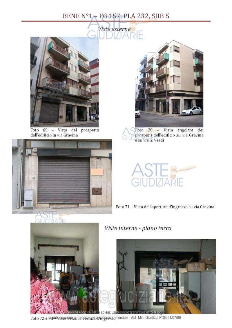 Vendita all'asta Senza incanto, con gara telematica asincrona - LOTTO 2: Piena proprietà di locale commerciale al piano terra con corrispondente deposito al piano interrato composto da un ambiente con annesso il bagno al piano terra e da un corrispondente vano al piano interrato; i due livelli sono collegati da una scala a rampa unica. Prezzo base € 84.000,00 (offerta minima € 63.000,00). Data inizio operazioni di vendita: 22/07/2026 ore 15:30. Giudice Chiara Cutolo. Professionista delegato alla vendita Avv. Angela Barbuto - Email "angelabarbuto@alice.it"; Cell. 3479041811. Custode Giudiziario Avv. Angela Barbuto - Email "angelabarbuto@alice.it"; Cell. 3479041811. Rif. Tribunale di Bari - Esecuzione immobiliare post legge 80 n. 423/2024