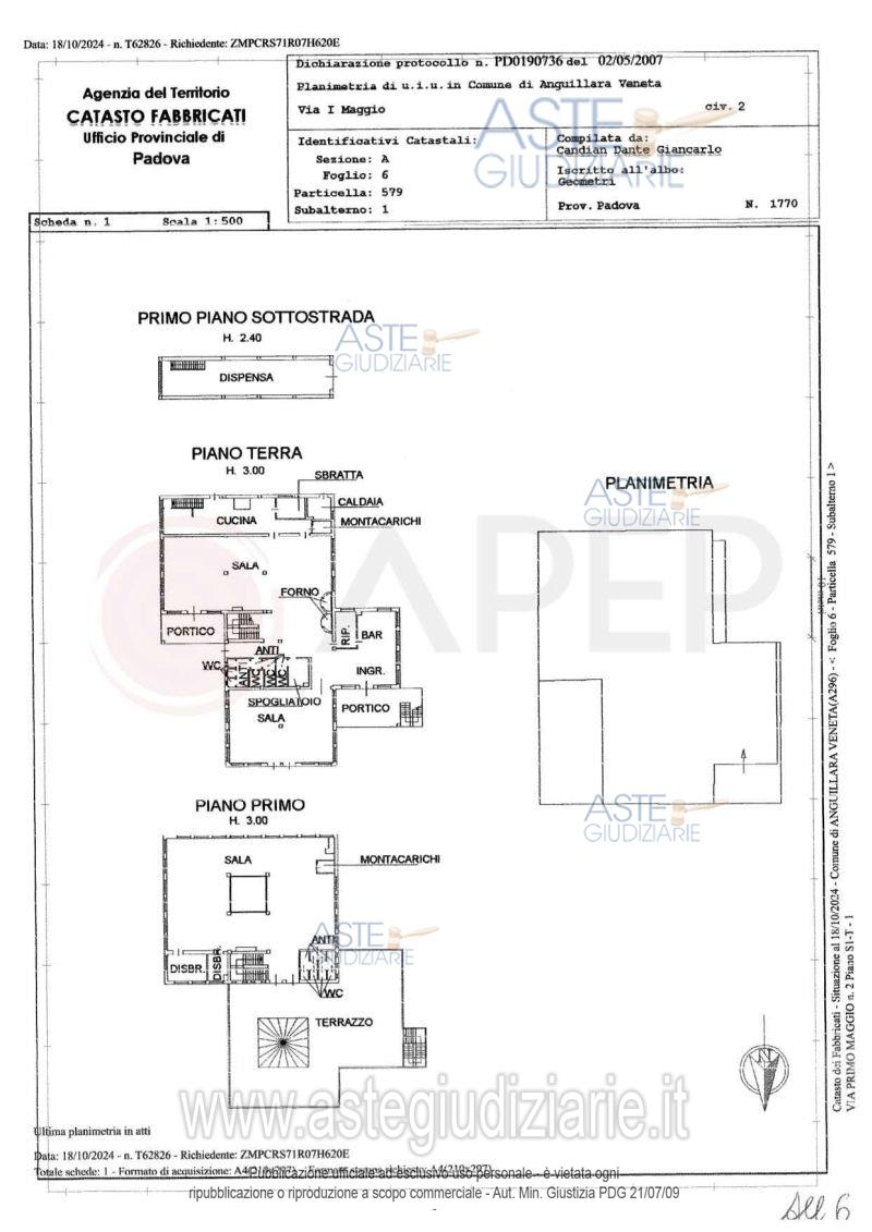 Vendita all'asta Senza incanto, con gara telematica sincrona - LOTTO 1: Lotto 1 - piena proprietà di fabbricato commerciale, sito in Comune di Anguillara Veneta (PD) in via Primo Maggio n. 2, in stato di abbandono e di degrado, già adibito a ristorante-pizzeria con 260 posti a sedere, sviluppato su 3 livelli, piano interrato, piano terra e piano primo con grande terrazzo a copertura del piano primo, per una superficie commerciale di mq. 1.242, oltre al diritto di superficie, su parte dell'area scoperta che circonda il fabbricato, di catastali mq. 1147. Occupato senza titolo. Prezzo base € 285.000,00 (offerta minima € 213.750,00). Data vendita 21/05/2026 ore 10:00. Giudice Amenduni. Professionista delegato alla vendita Not. Alessia Callegari - Email "aste@apepnotai.it"; Tel. 049651228. Custode Giudiziario Apep - Email "visita@apepnotai.it"; Tel. 049651228. Rif. Tribunale di Padova - Espropriazione immobiliare (cartabia) n. 93/2024