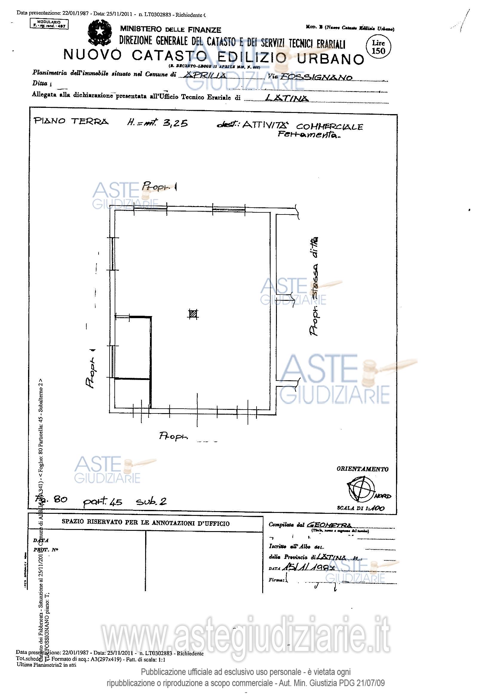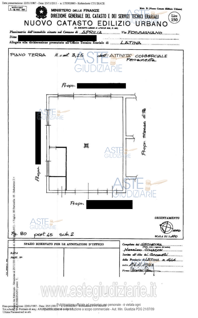 Vendita all'asta Senza incanto, con gara telematica asincrona - LOTTO 1: Capannone con accesso da Via Fossignano n. 234, costituito da un unico locale delle dimensioni interne di mt 9,70 x 12,40 x 3,25 di altezza, all'interno del quale sono ricavati due piccoli ambienti, uno dei quali adibito a servizio igienico. Il tutto risulta realizzato antecedentemente al 1967. Prezzo base € 12.656,00 (offerta minima € 9.492,00). Data inizio operazioni di vendita: 28/04/2026 ore 10:00. Professionista delegato alla vendita Avv. Stefano Reali - Email "avv.stefanoreali@gmail.com"; Cell. 3388960291; Tel. 0773474169. Custode Giudiziario Avv. Stefano Reali - Email "avv.stefanoreali@gmail.com"; Cell. 3388960291; Tel. 0773474169. Rif. Tribunale di Latina - Esecuzione immobiliare post legge 80 n. 186/2010