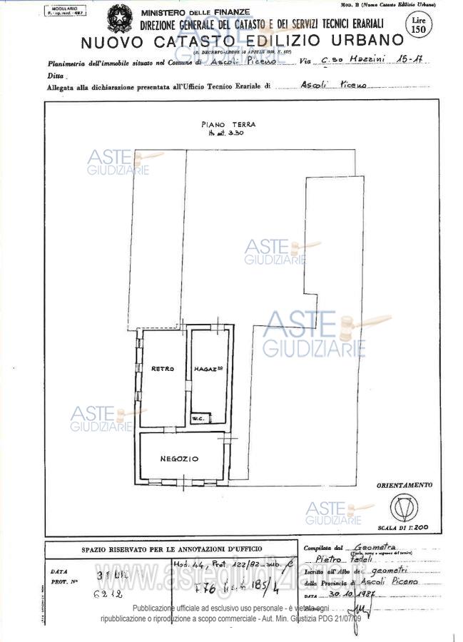 Vendita all'asta Offerta segreta - LOTTO 2: Negozio con retronegozio e magazzino al piano terra. Prezzo base € 114.300,00 (offerta minima € 114.300,00). Data vendita 27/07/2026 ore 15:00. Professionista delegato alla vendita Not. Cristiana Castallo. Liquidazione coatta n. 126/1993