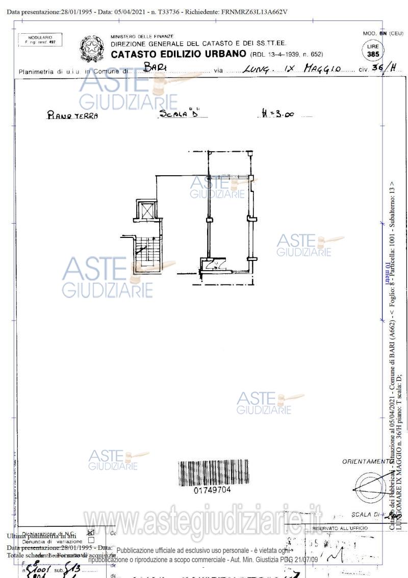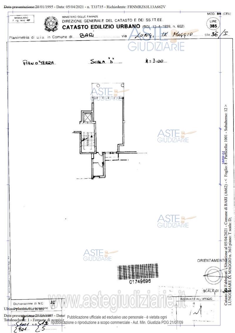 Vendita all'asta Senza incanto, con gara telematica asincrona - LOTTO 1: Locale commerciale a piano terra dell'edificio "scala D" del complesso denominato "Equatore", attualmente utilizzato quale ufficio, composto da un vano unico oltre disimpegno e ripostiglio, della superficie commerciale di circa 61 mq. Locale commerciale a piano terra dell'edificio "scala D" del complesso denominato "Equatore", attualmente utilizzato quale ufficio, composto da un vano unico oltre antibagno e bagno, della superficie commerciale di circa 45 mq. Prezzo base € 62.909,00 (offerta minima € 47.182,00). Data inizio operazioni di vendita: 01/07/2026 ore 17:00. Giudice Antonio Ruffino. Professionista delegato alla vendita Avv. Ileana Giovanna Magarelli - Email "avvileanamagarelli@gmail.com". Custode Giudiziario Avv. Ileana Giovanna Magarelli - Email "avvileanamagarelli@gmail.com". Rif. Tribunale di Bari - Esecuzione immobiliare post legge 80 n. 438/2020