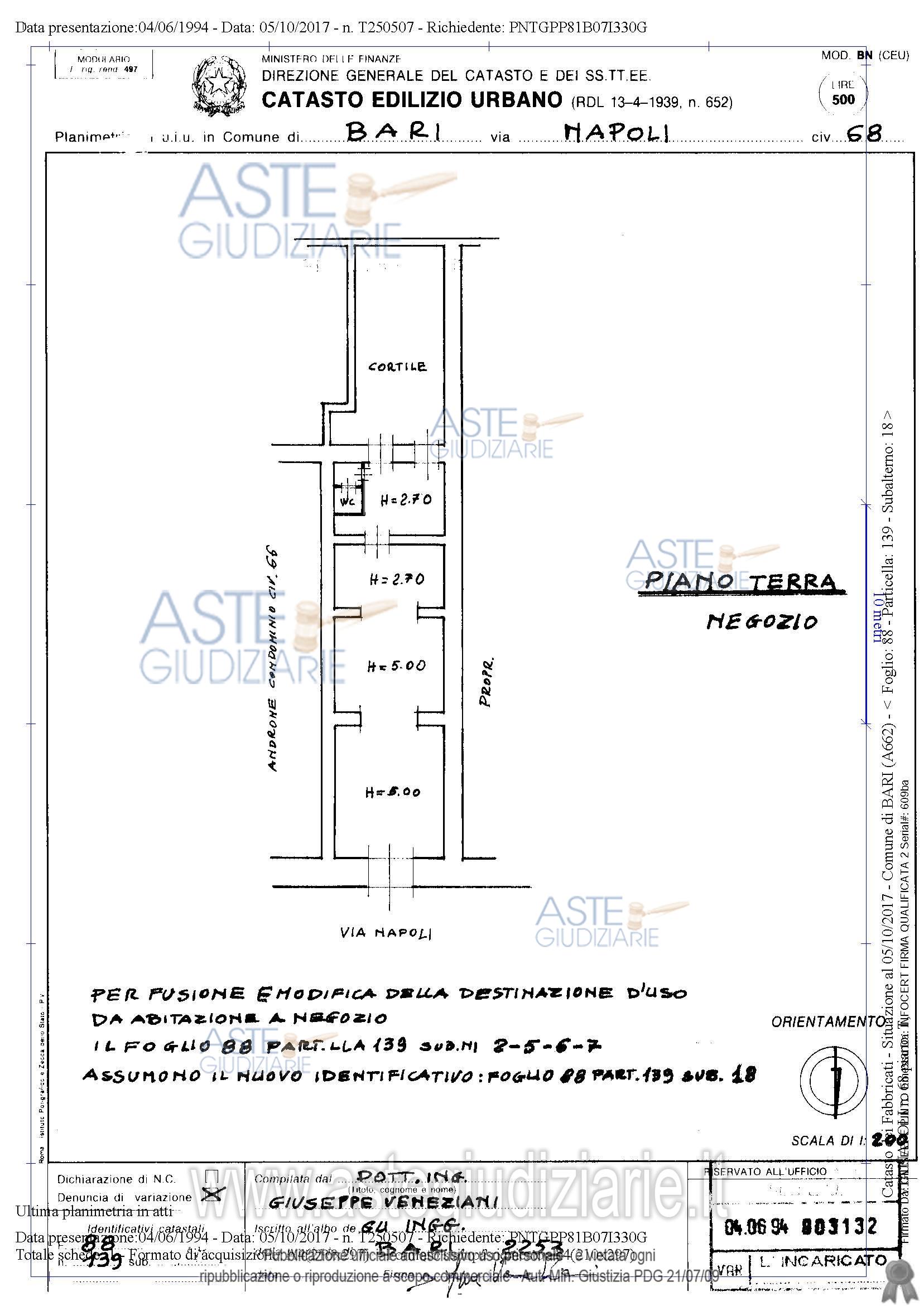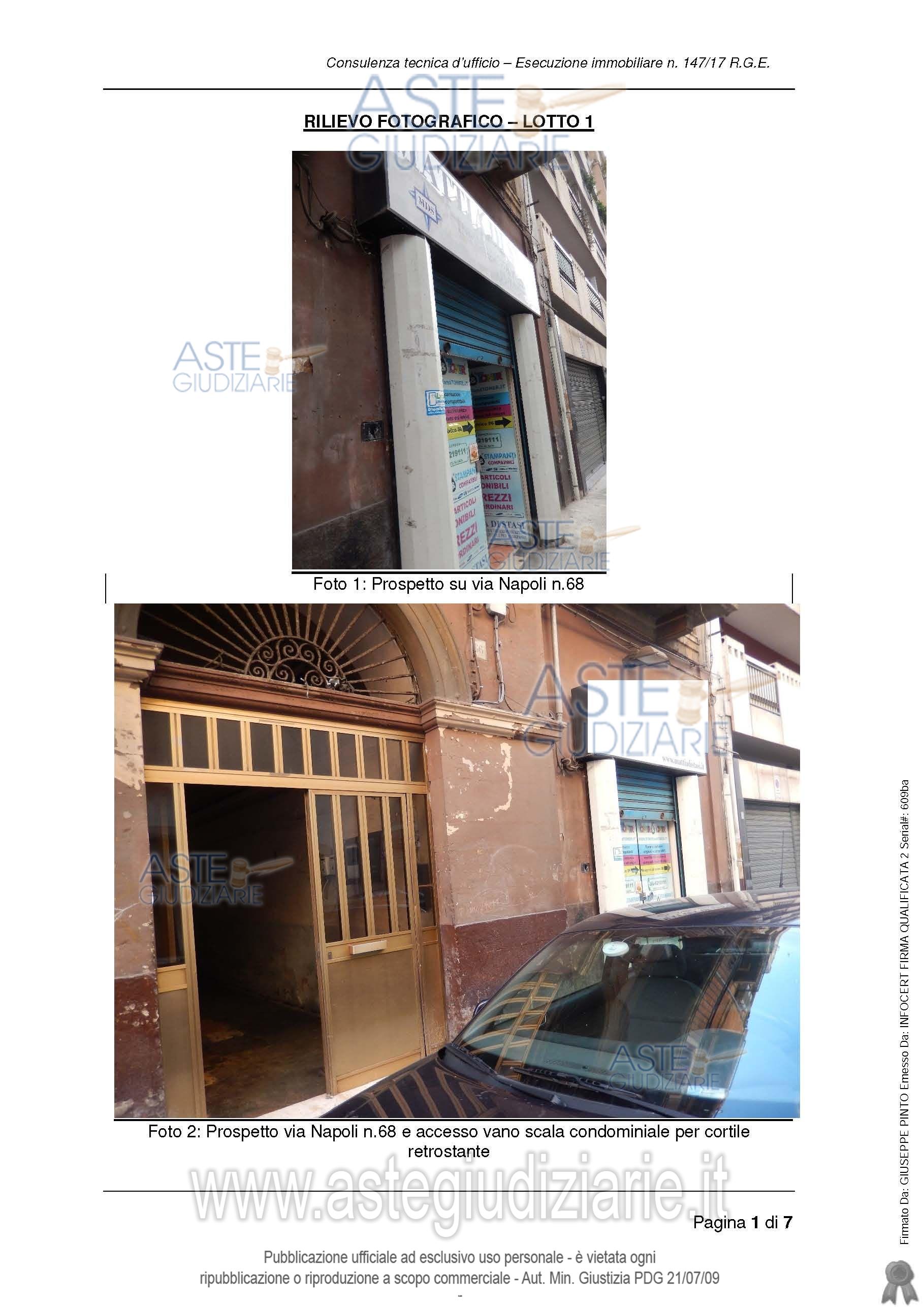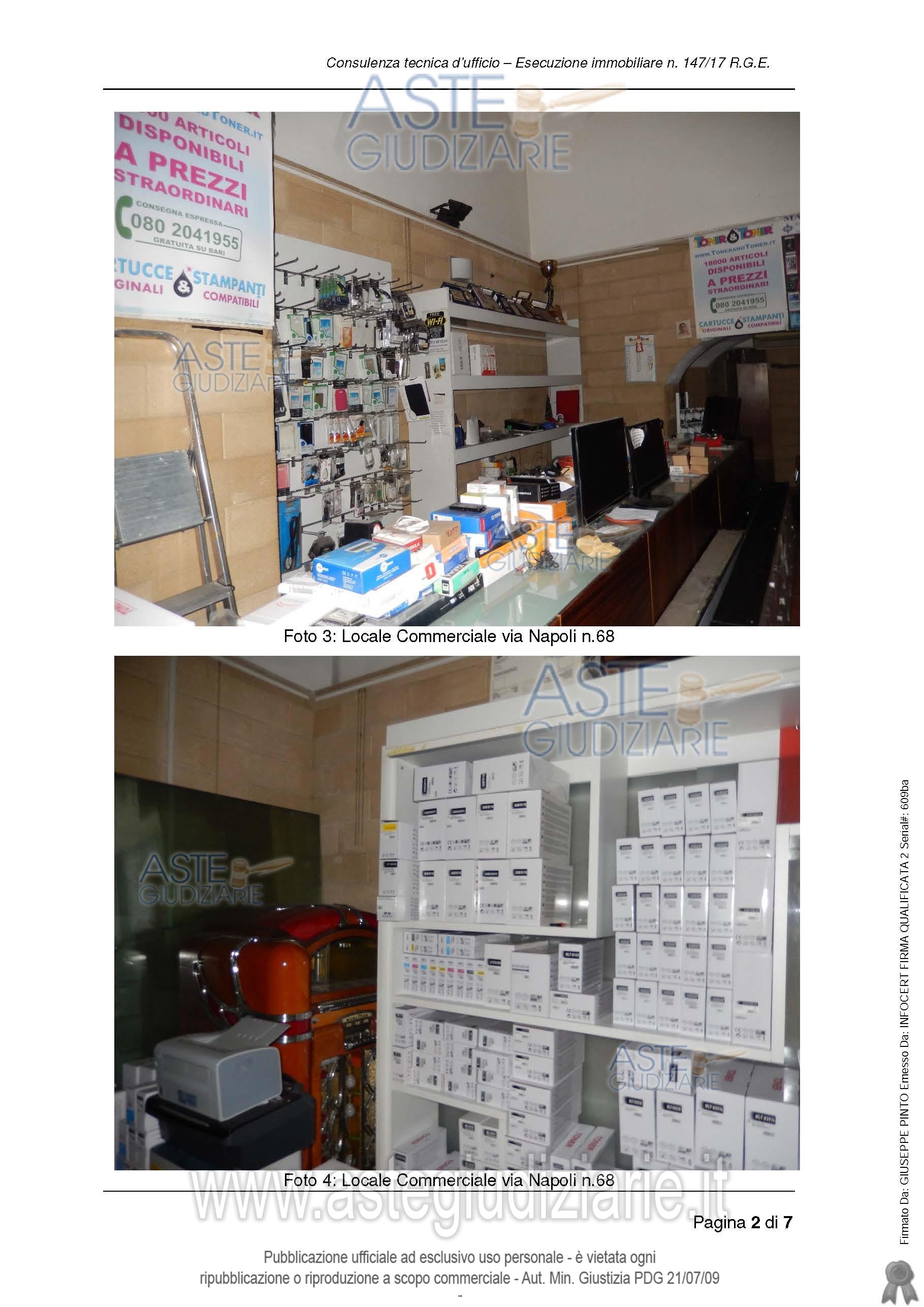 Vendita all'asta Senza incanto, con gara telematica asincrona - LOTTO 1: Piena proprietà di locale commerciale a piano terra. Accedendo all’unità immobiliare ci si ritrova in quattro locali collegati fra di loro. È parte dell’immobile anche un cortile retrostante a cui si accede dall’ingresso condominiale del civico n. 66. Prezzo base € 161.250,00 (offerta minima € 120.940,00). Data inizio operazioni di vendita: 08/04/2026 ore 16:30. Giudice Dott. Marina Cavallo. Professionista delegato alla vendita Avv. Daniela Teresa Santamato - Email "daniela@caramiasantamato.it". Custode Giudiziario Avv. Daniela Teresa Santamato - Email "daniela@caramiasantamato.it". Rif. Tribunale di Bari - Esecuzione immobiliare post legge 80 n. 147/2017